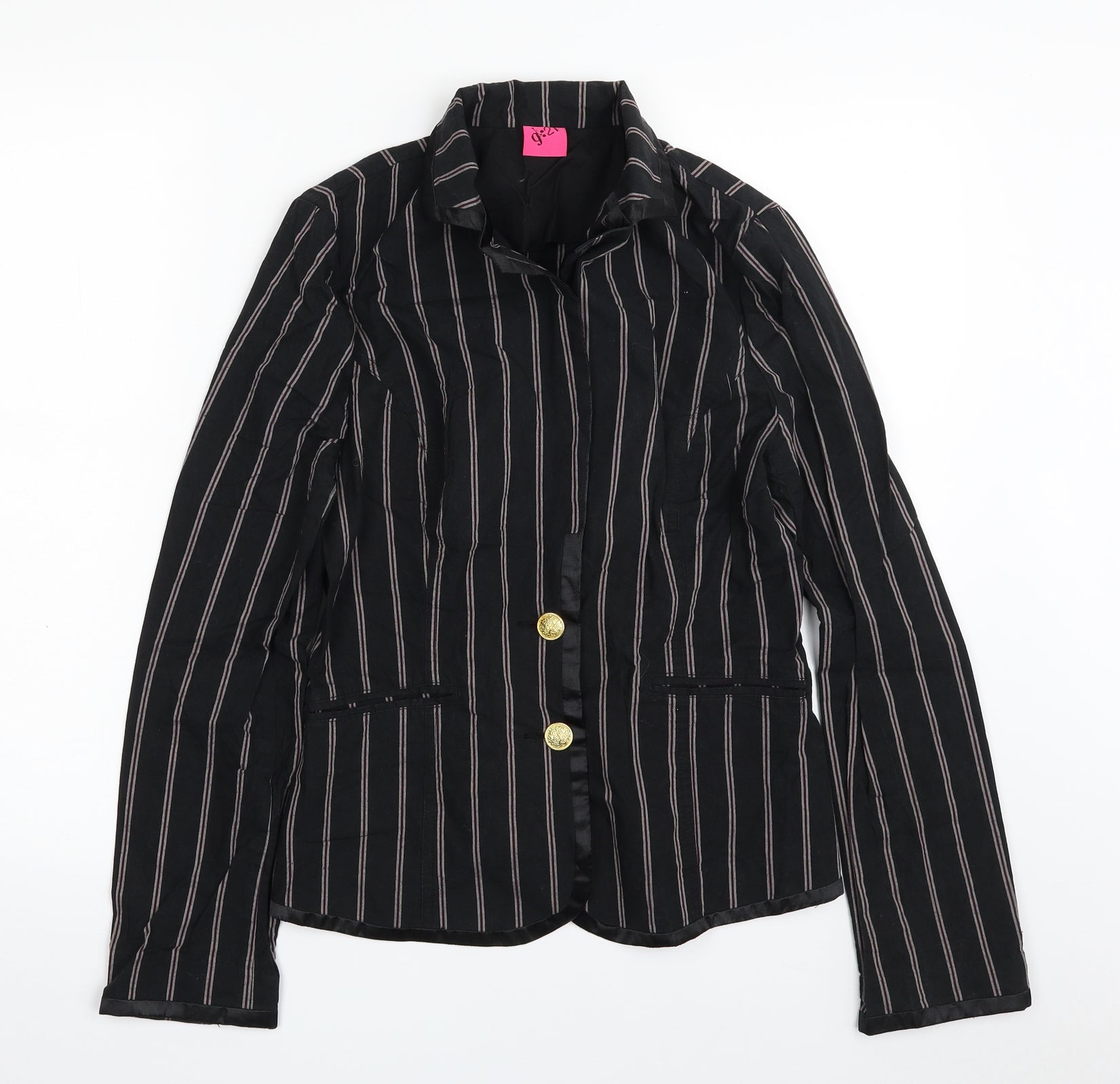 George Womens Black Striped Jacket Size 12 Button