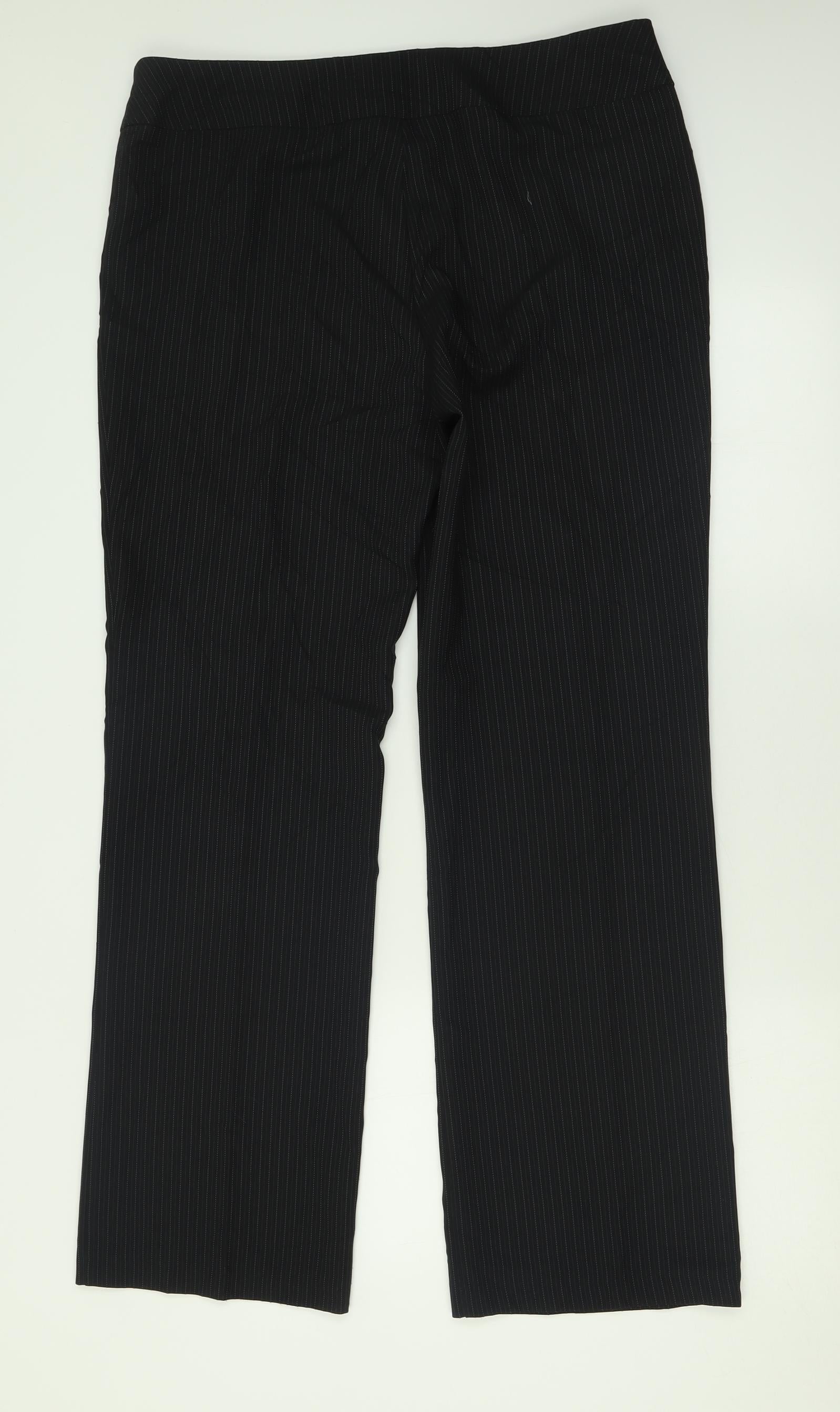 George Womens Black Striped Polyester Trousers Size 14 L32 in Regular Button