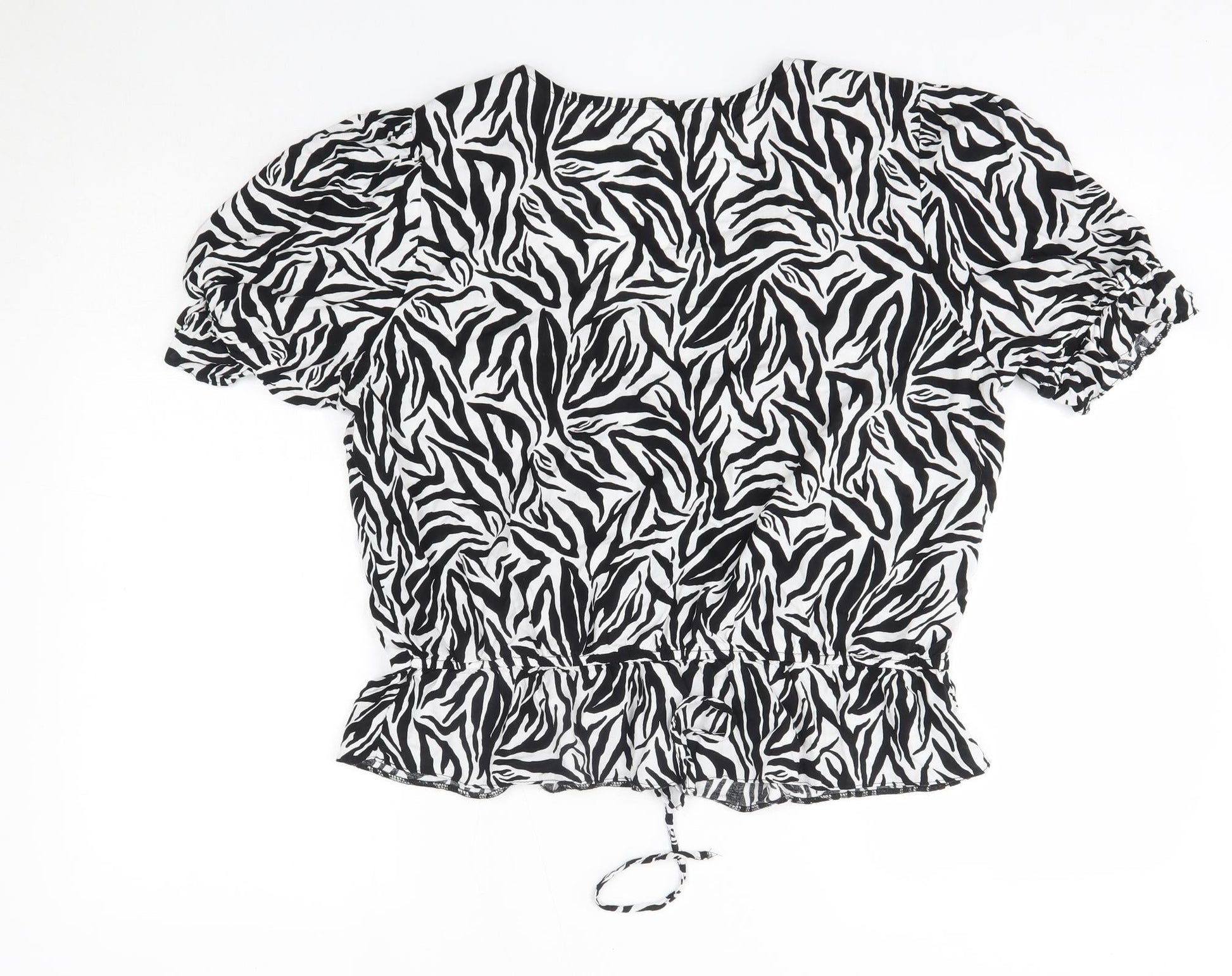 George Womens Black Striped Viscose Basic Blouse Size 16 V-Neck