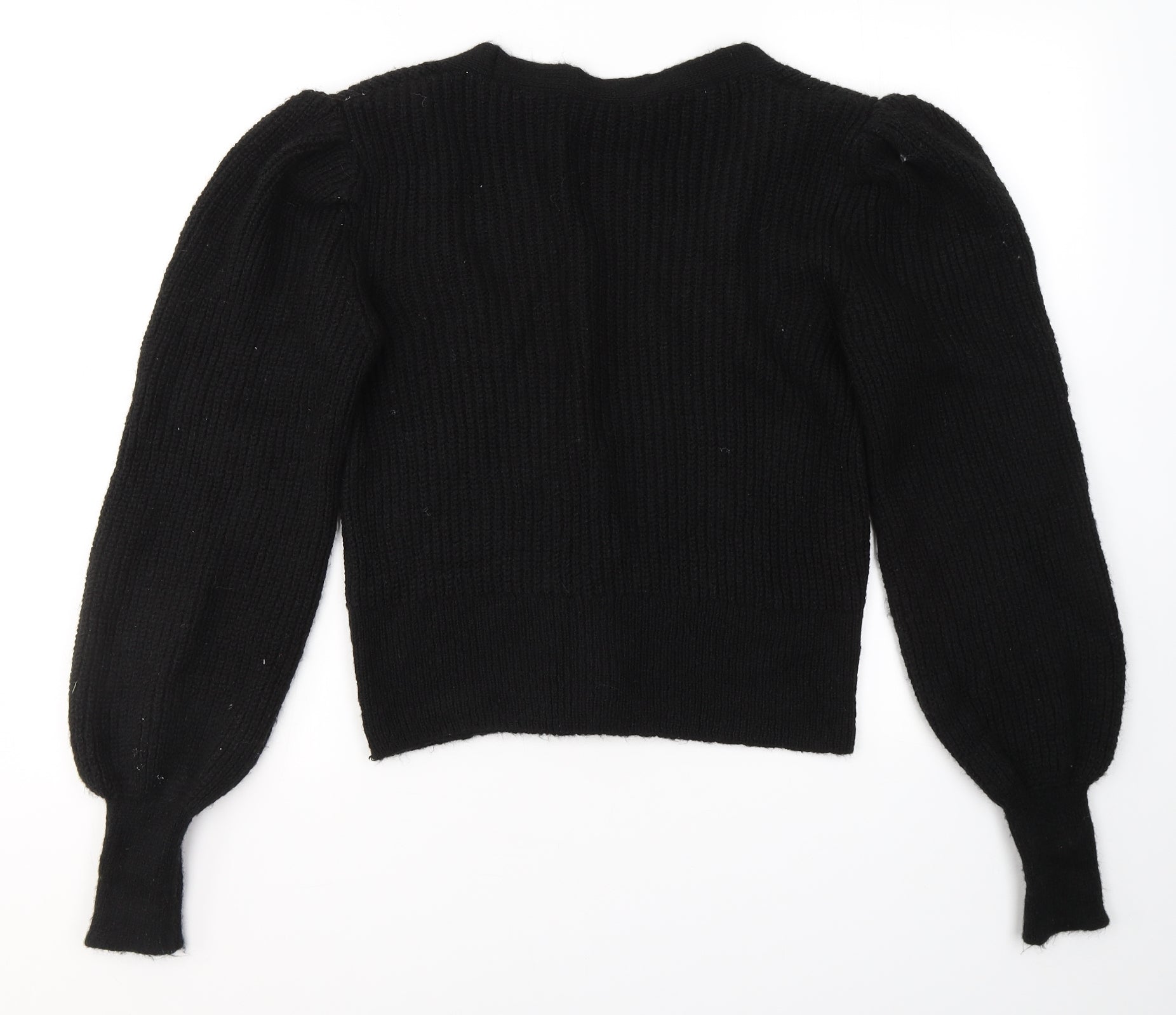 George Womens Black V-Neck Acrylic Cardigan Jumper Size S