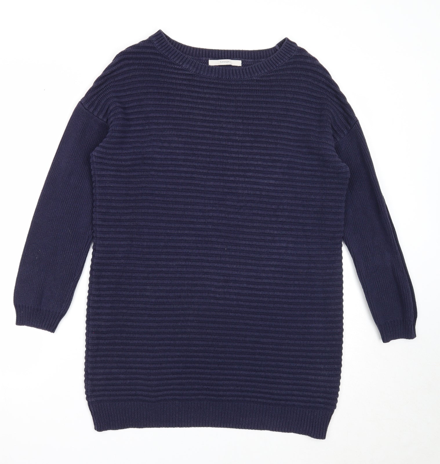 George Womens Blue Boat Neck Striped Cotton Pullover Jumper Size 8