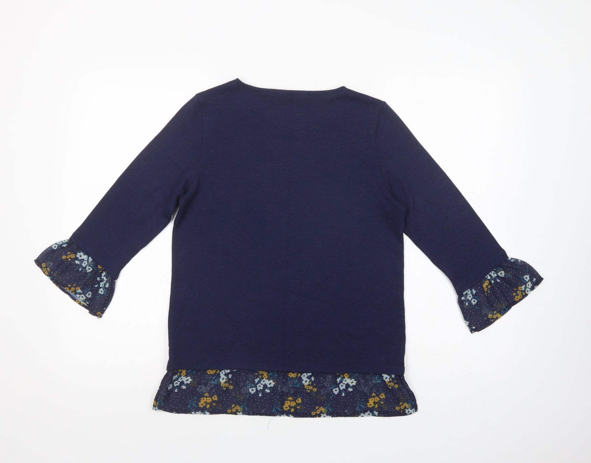George Womens Blue Crew Neck Floral Polyester Pullover Jumper Size 8