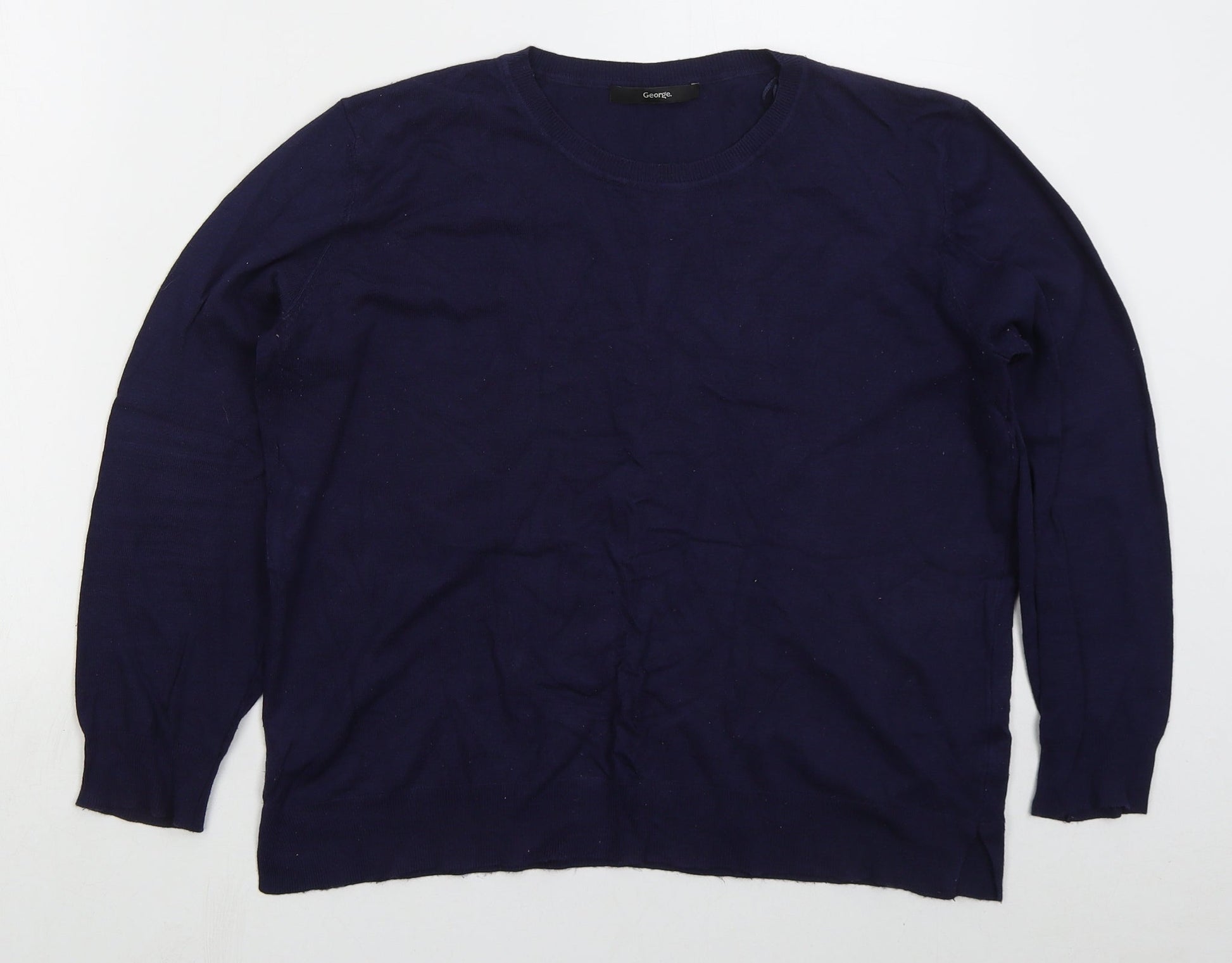 George Womens Blue Crew Neck Viscose Pullover Jumper Size 14