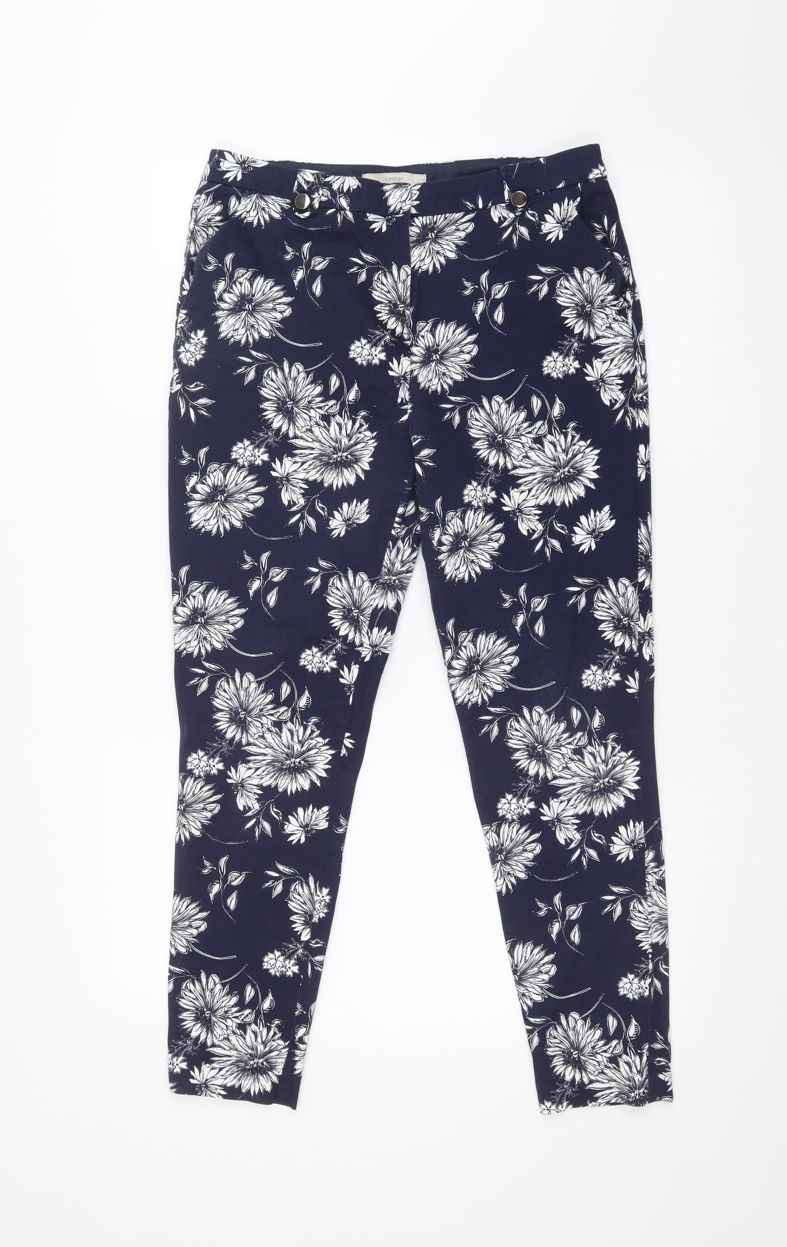 George Womens Blue Floral Trousers Size 10 L26 in