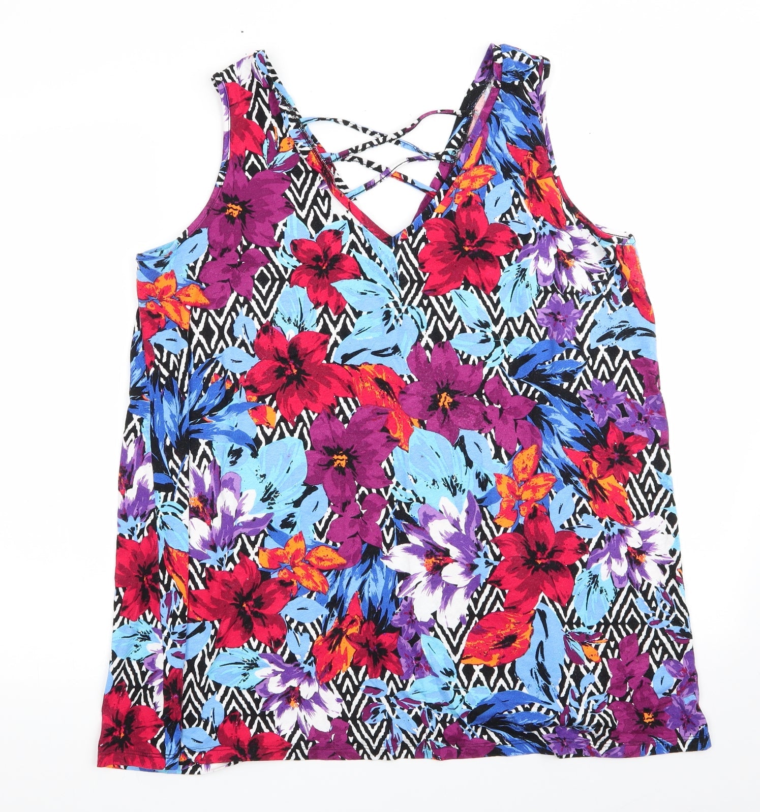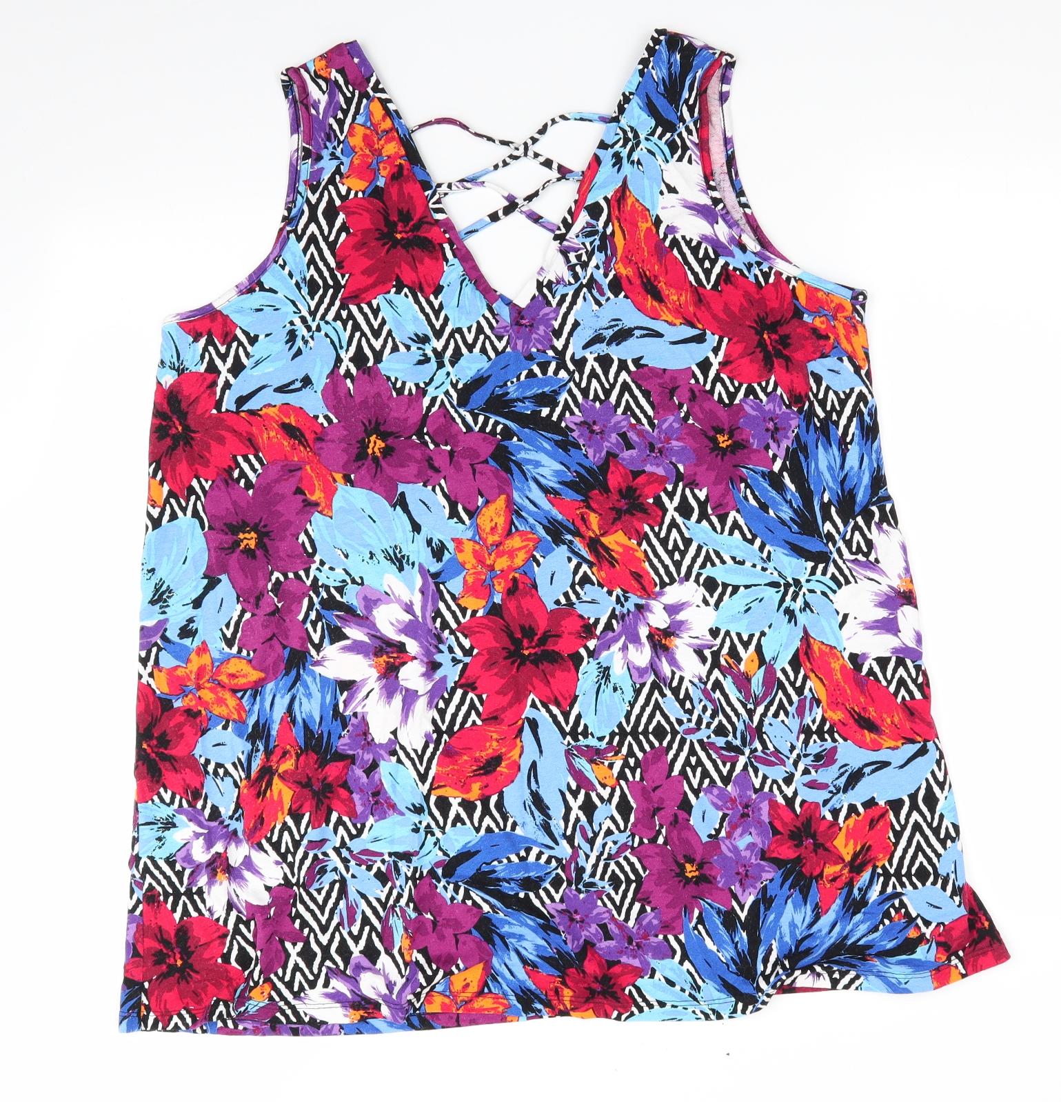 George Womens Blue Floral Viscose Basic Tank Size 16 V-Neck - V Neck Front & Back