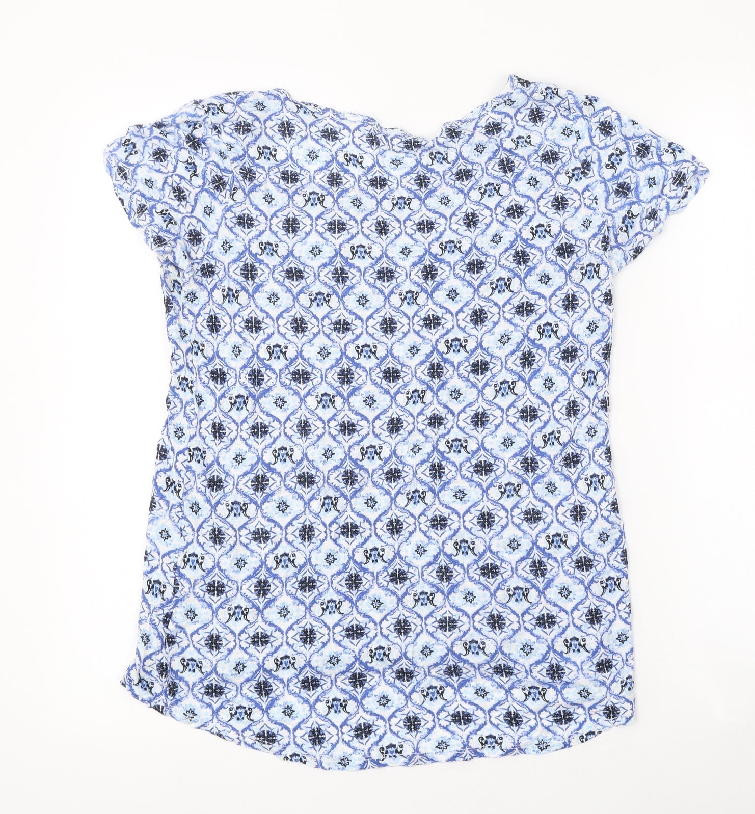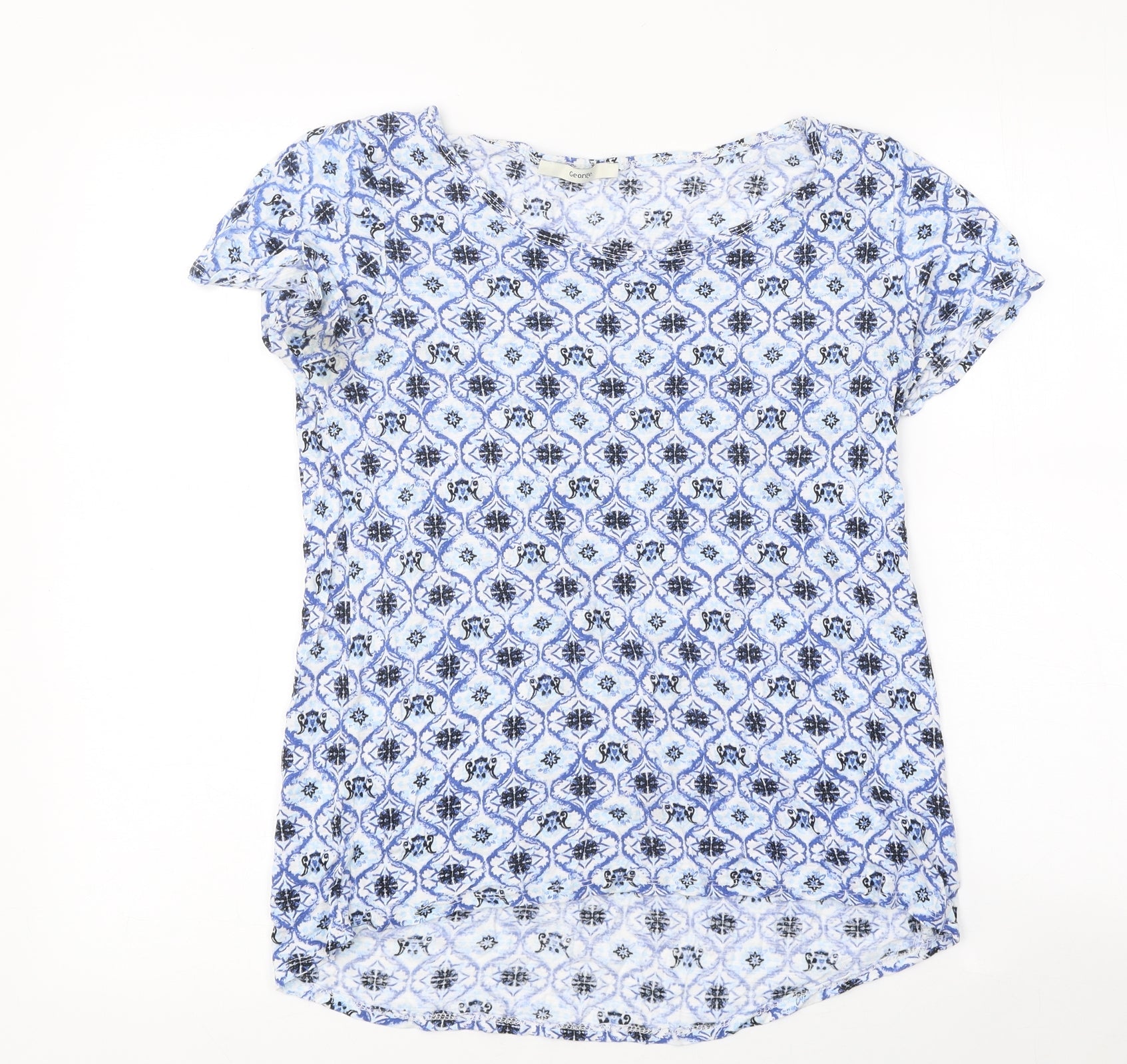 George Womens Blue Geometric Polyester Basic T-Shirt Size 8 Round Neck