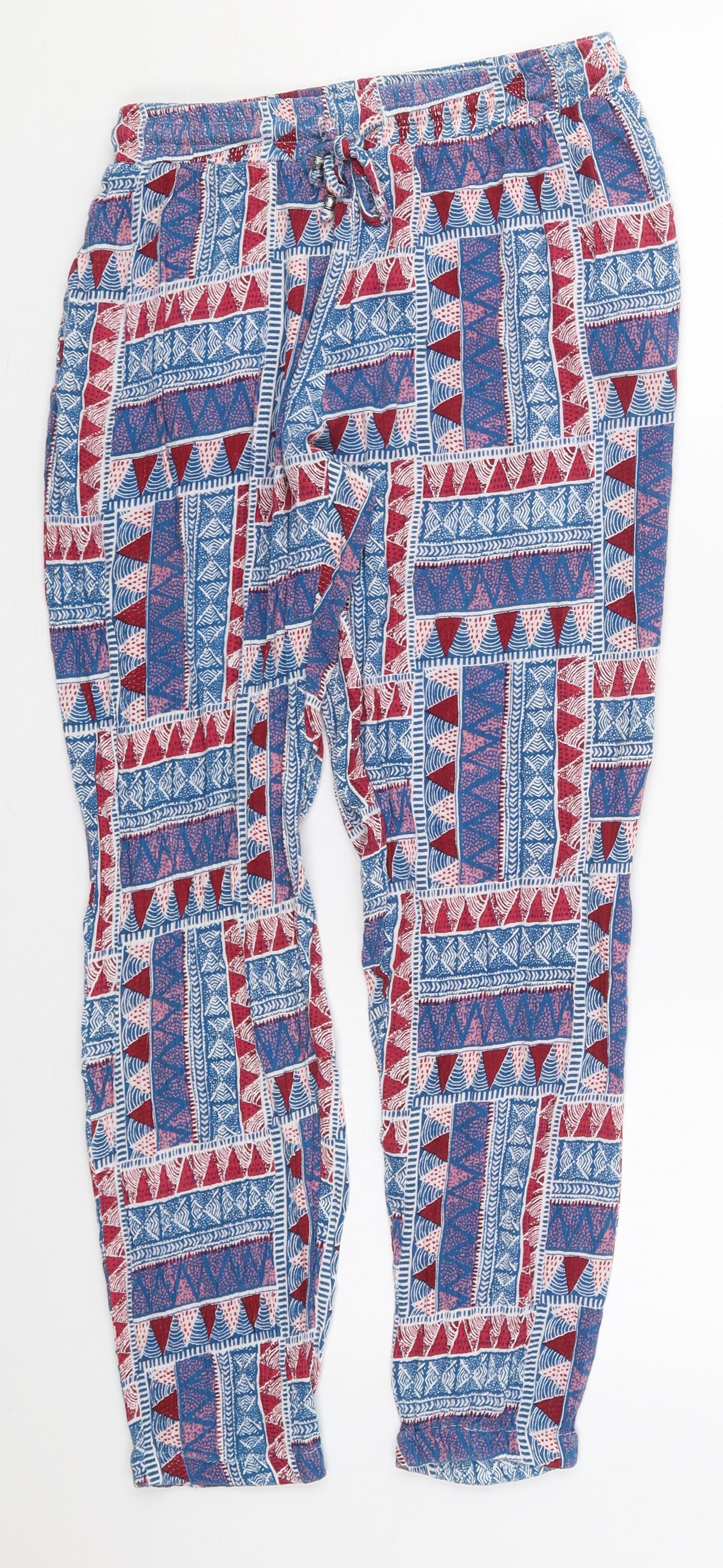 George Womens Blue Geometric Viscose Trousers Size 8 L25 in Regular Drawstring