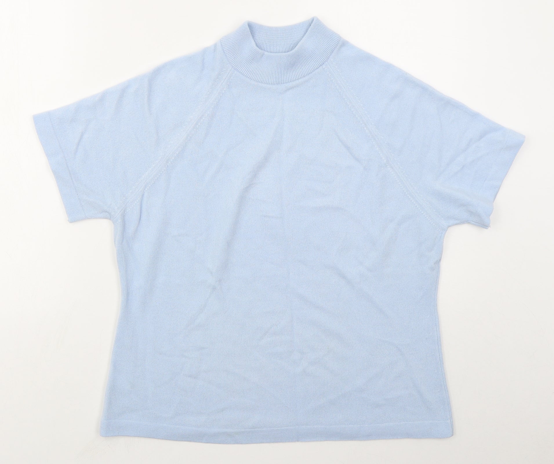 George Womens Blue Mock Neck Acrylic Pullover Jumper Size 16