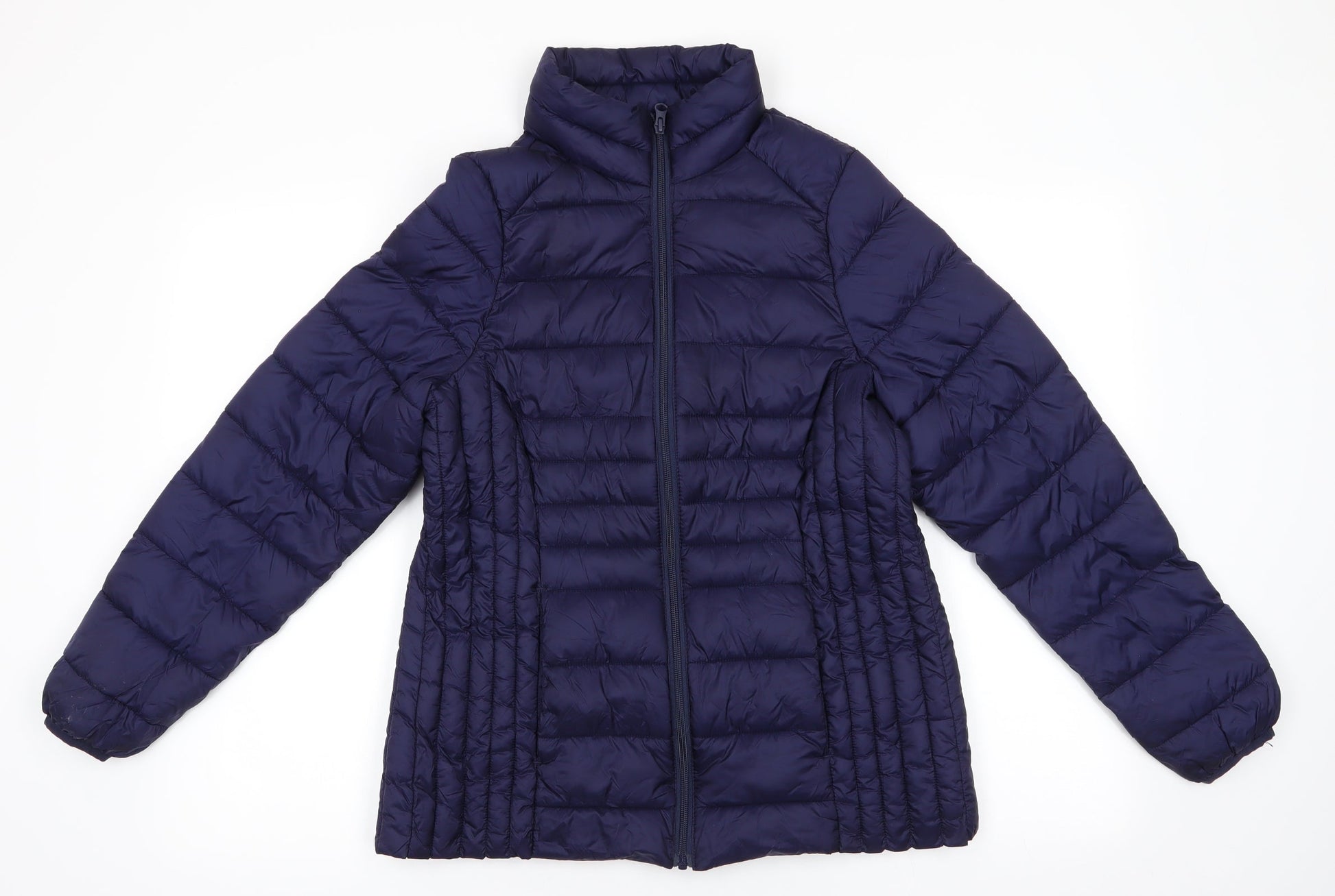 George Womens Blue Quilted Coat Zip - Midnight Blue subtle sheen