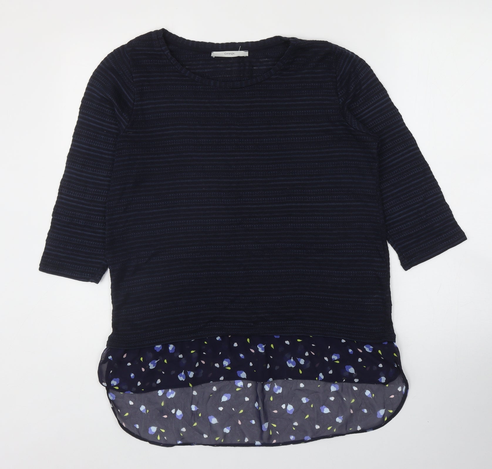 George Womens Blue Round Neck Floral Polyester Pullover Jumper Size 14