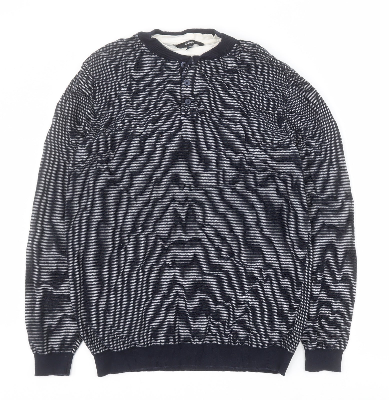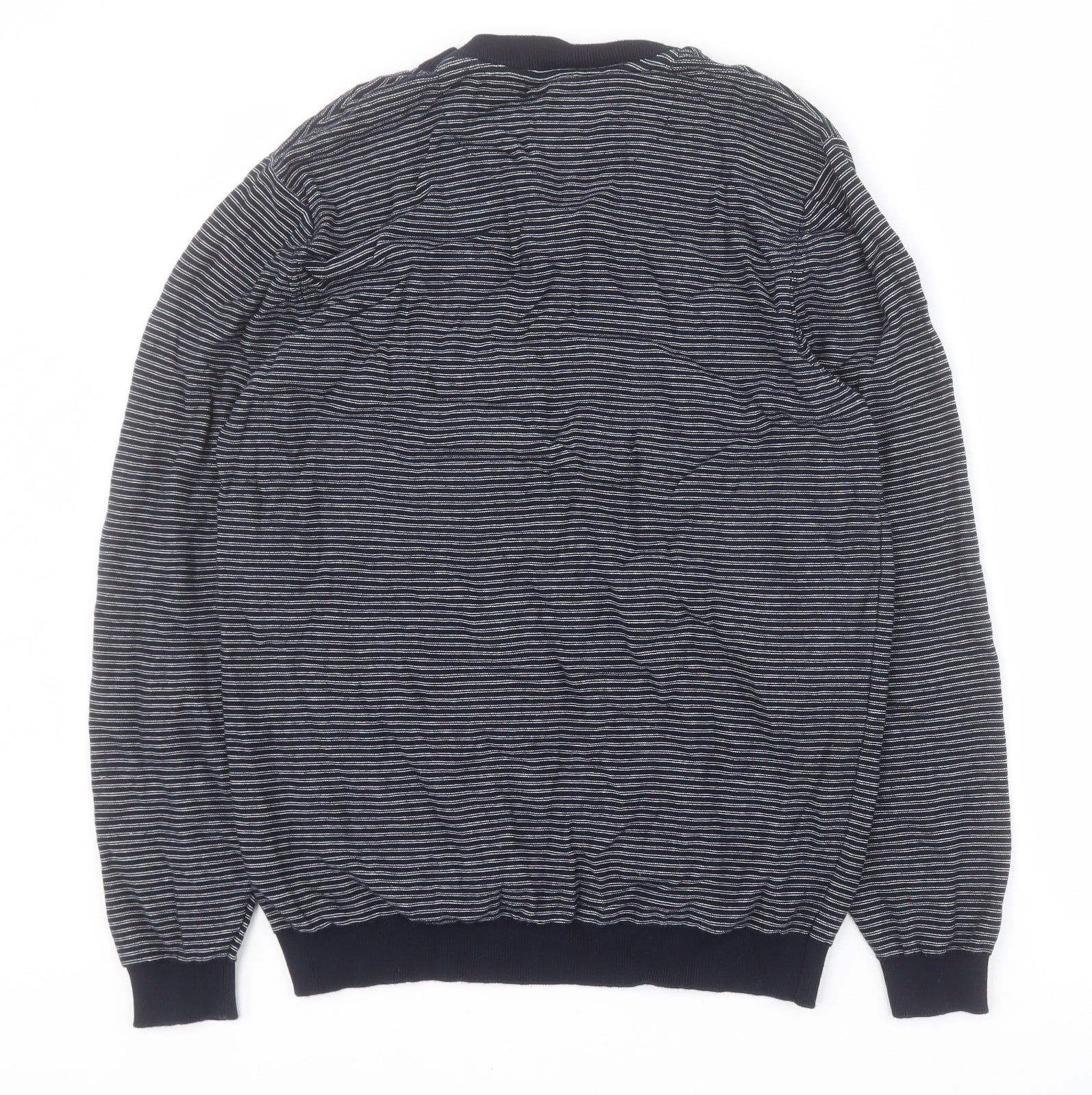 George Womens Blue Round Neck Striped 100% Cotton Pullover Jumper Size M