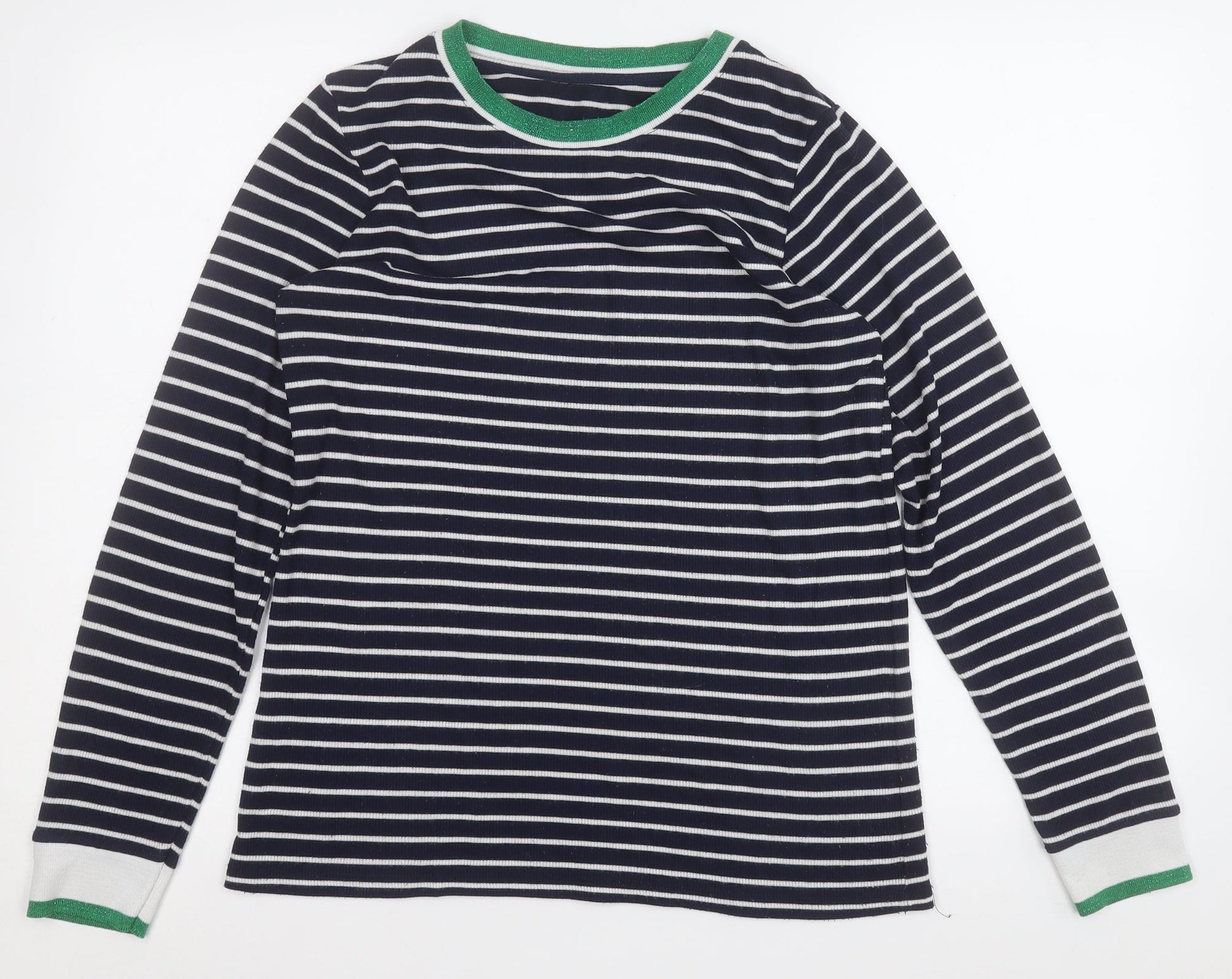 George Womens Blue Round Neck Striped Polyester Pullover Jumper Size 12