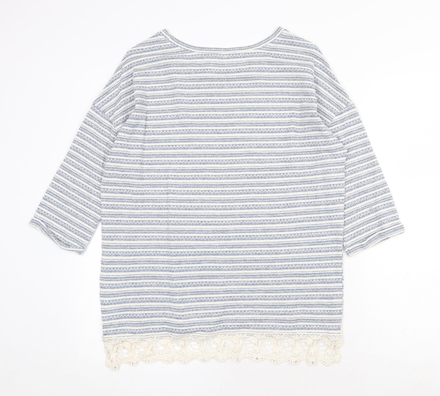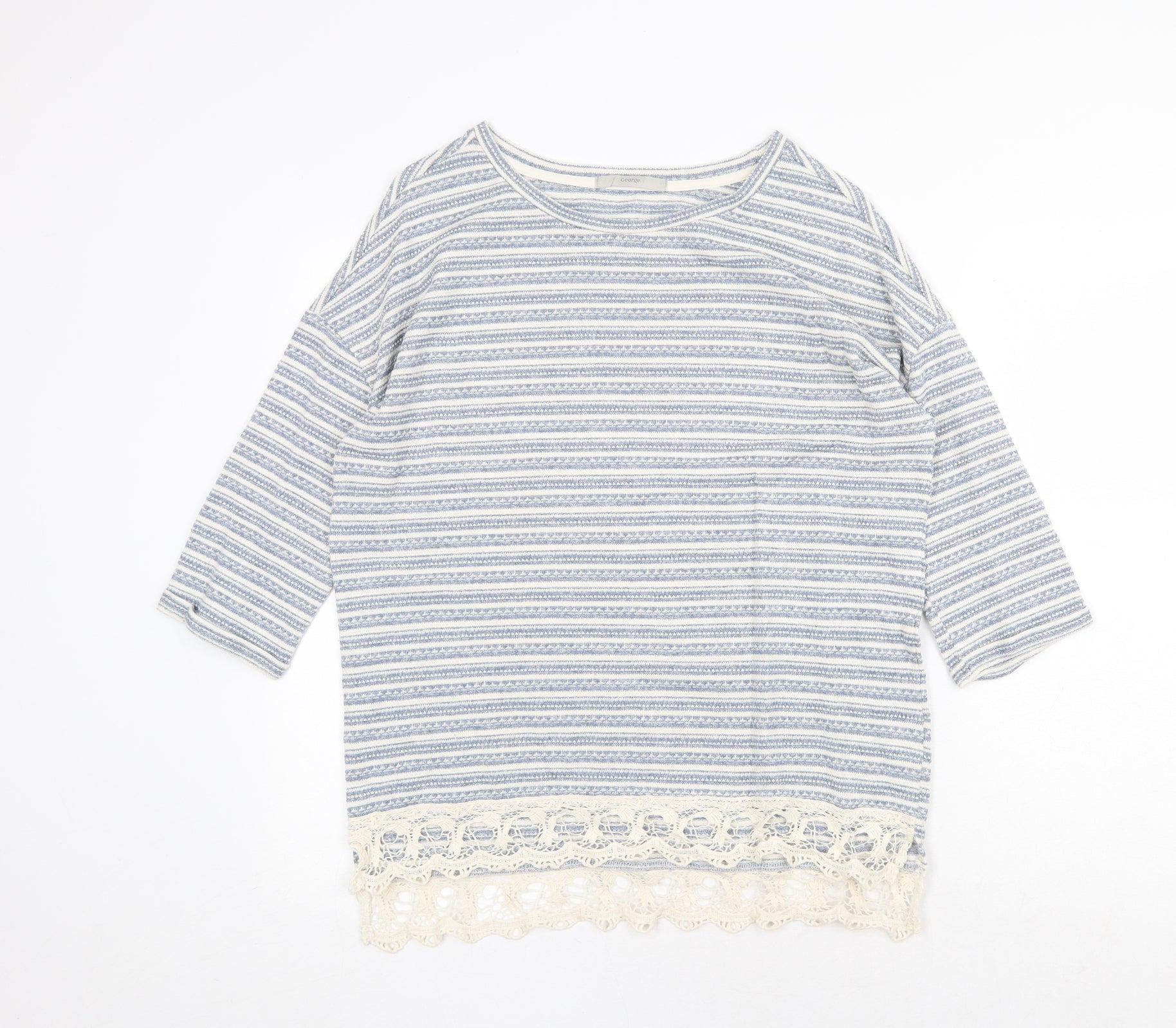 George Womens Blue Round Neck Striped Polyester Pullover Jumper Size 14