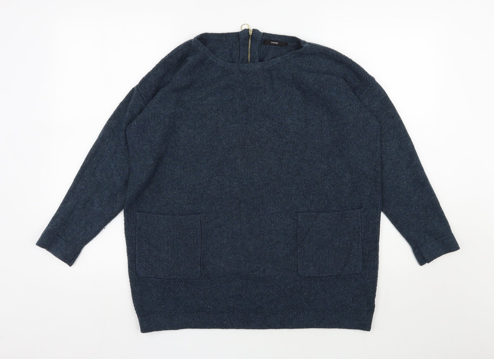 George Womens Blue Scoop Neck Acrylic Pullover Jumper Size 14