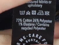 - Material Breakdown: 73% Cotton 26% Polyester 1% Elastane