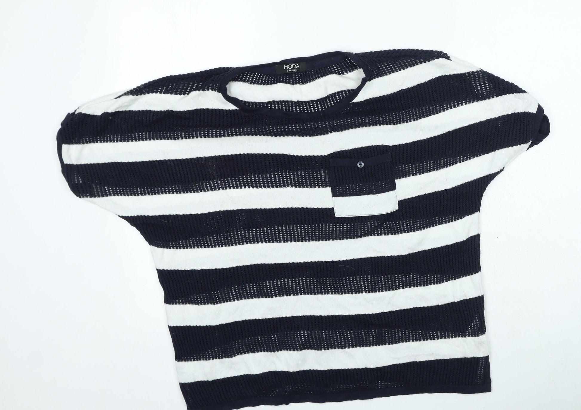 George Womens Blue Striped Cotton Basic T-Shirt Size 18 Round Neck