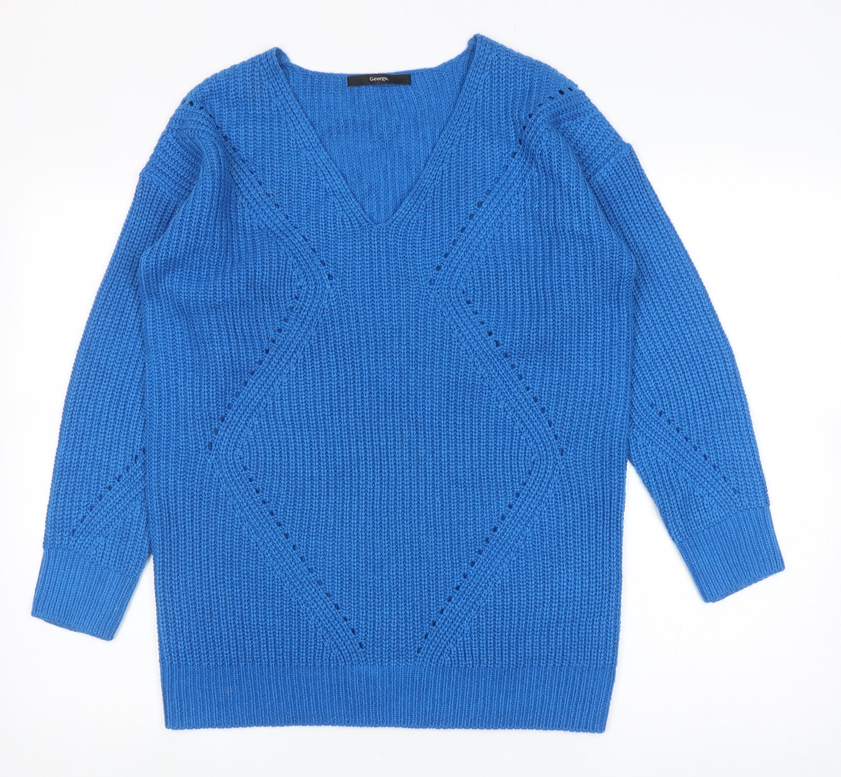 George Womens Blue V-Neck Acrylic Pullover Jumper Size S