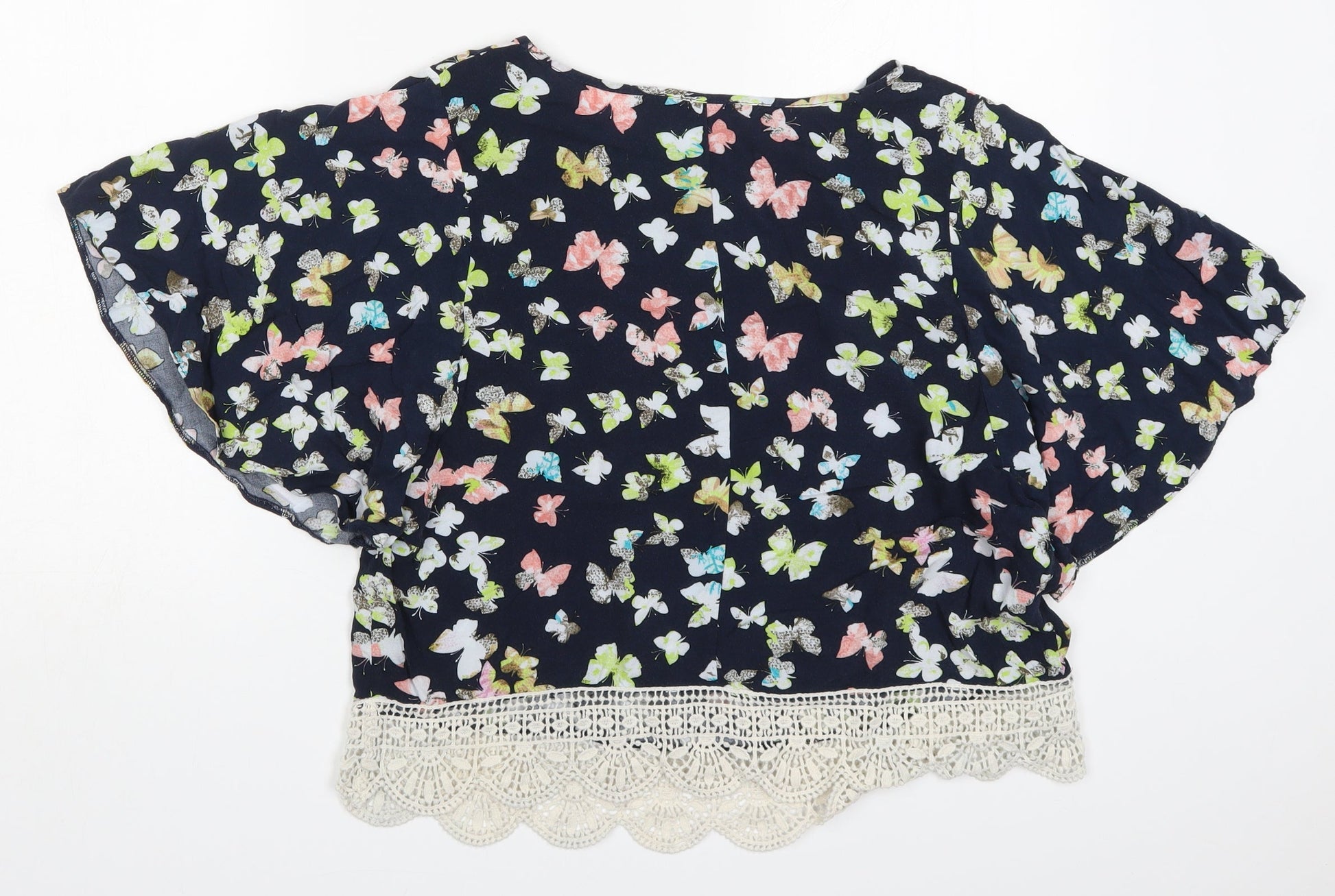 George Womens Blue Viscose Basic Blouse Size 10 Round Neck - Butterflies