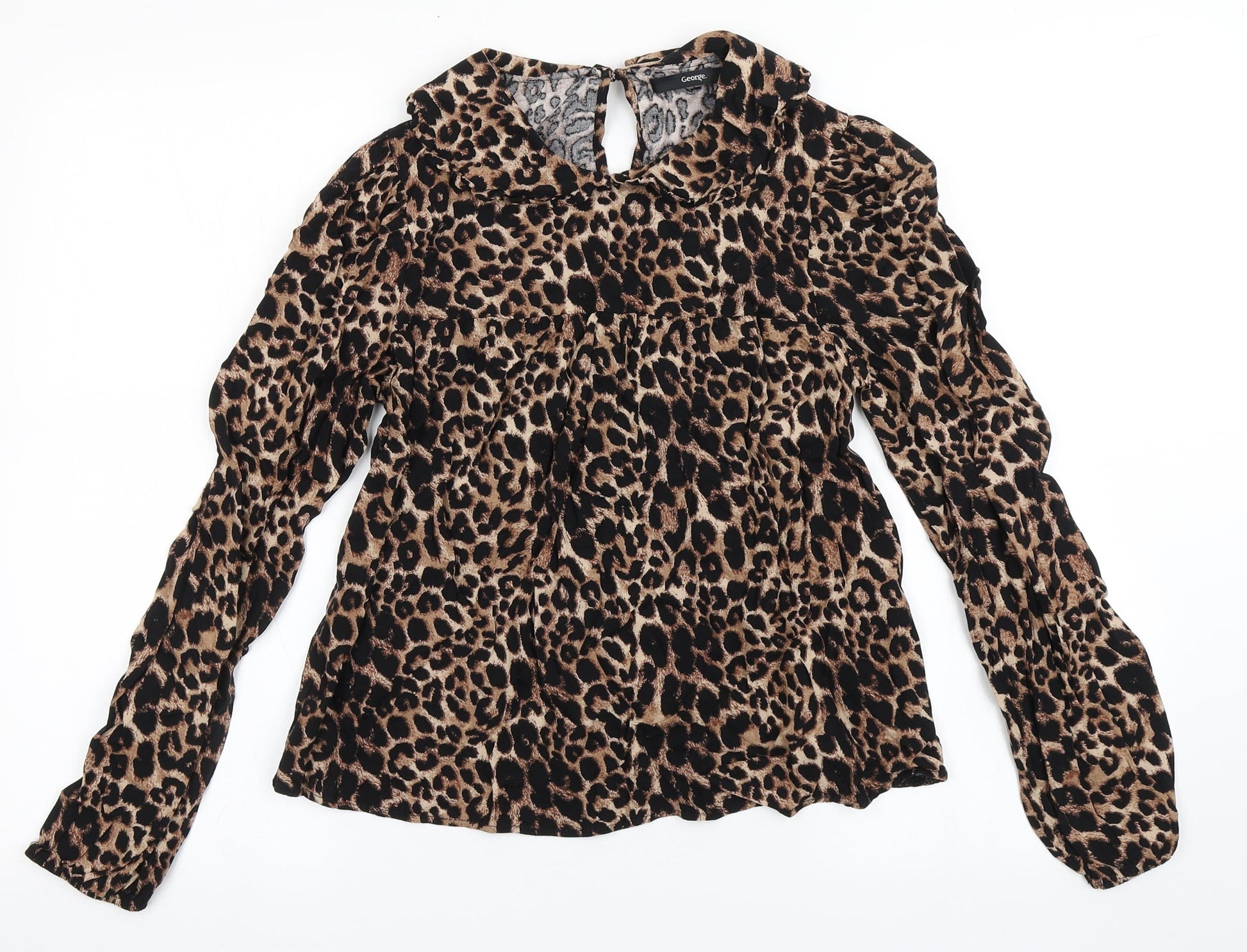 George Womens Brown Animal Print Viscose Basic Blouse Size 8 Collared