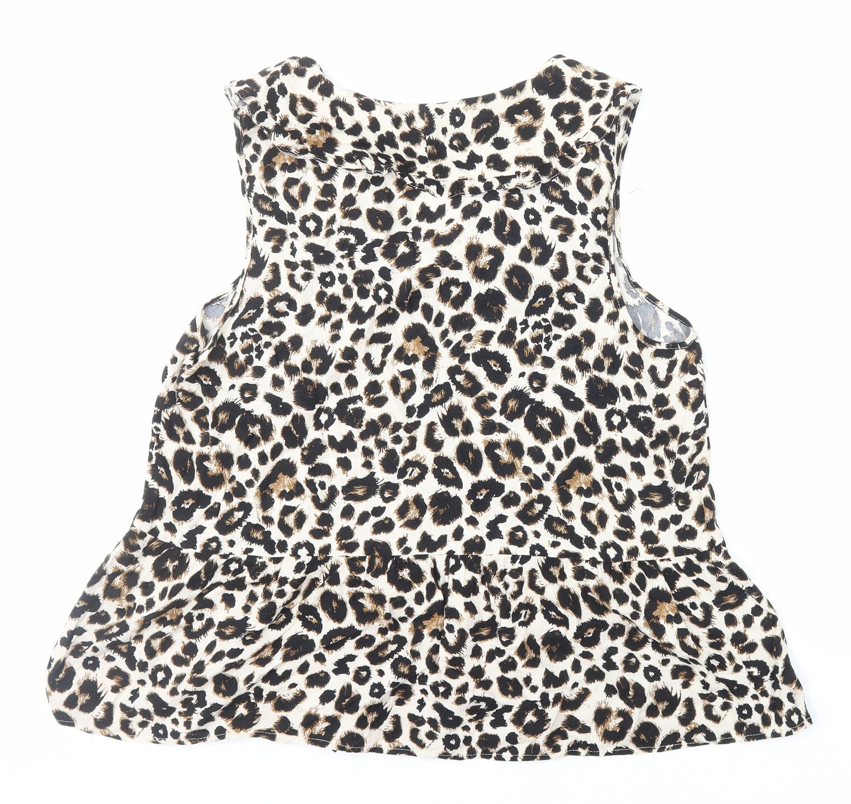 George Womens Brown Animal Print Viscose Basic Button-Up Size 14 Collared - Leopard Print