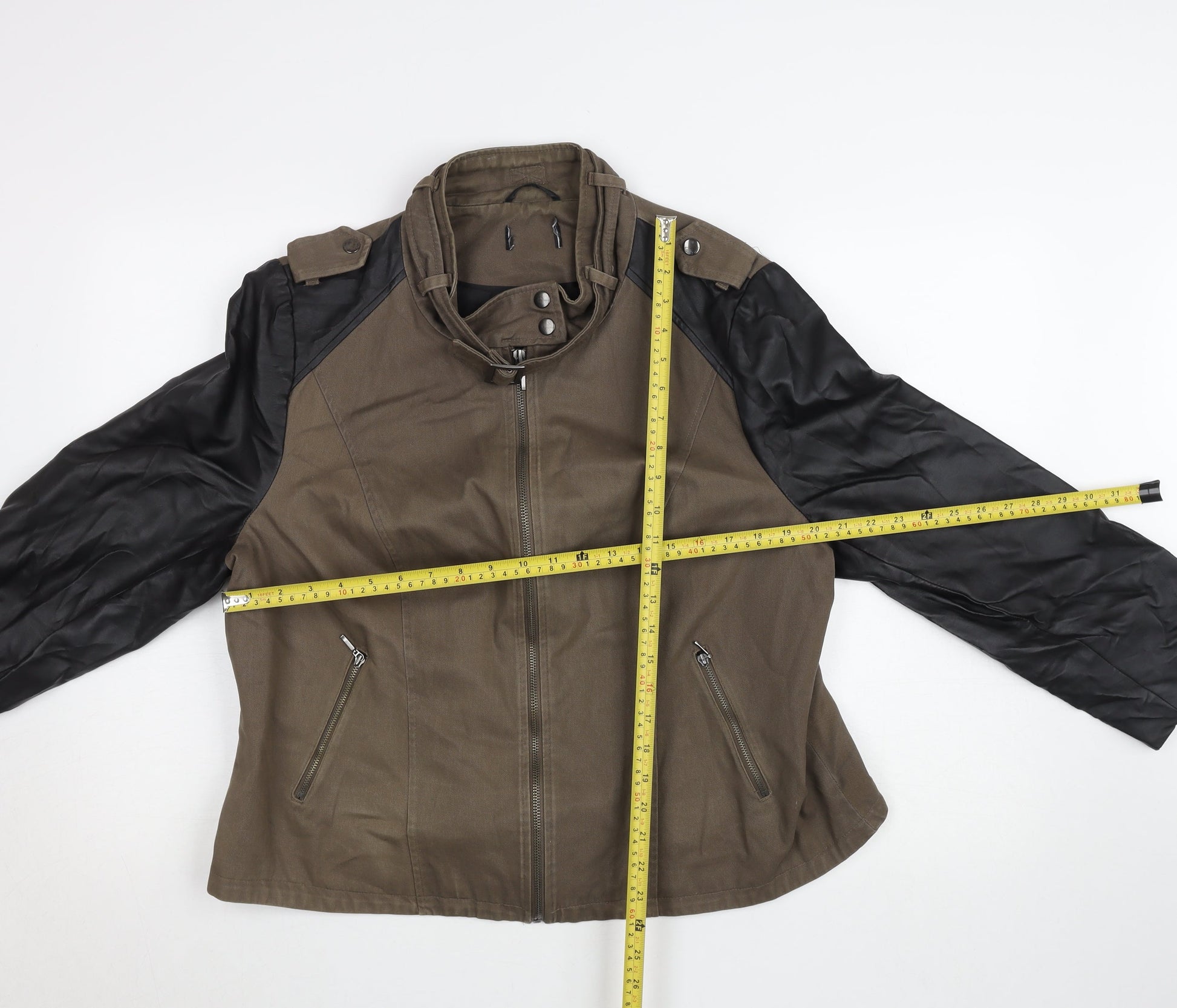George Women's Brown & Black Biker Jacket UK 22 Faux Leather Sleeves