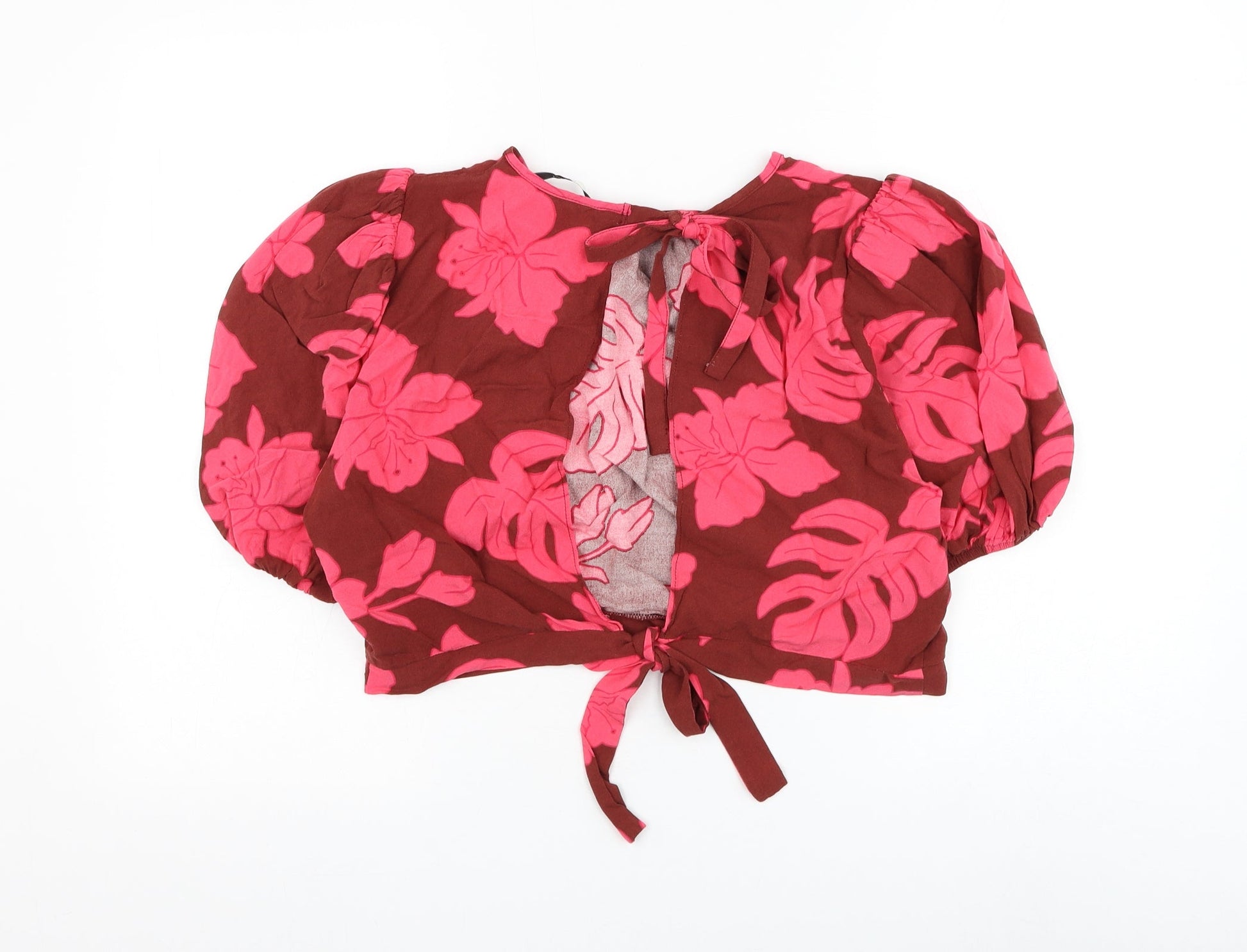 George Womens Brown Floral Viscose Cropped Blouse Size 14 Round Neck - Open Back