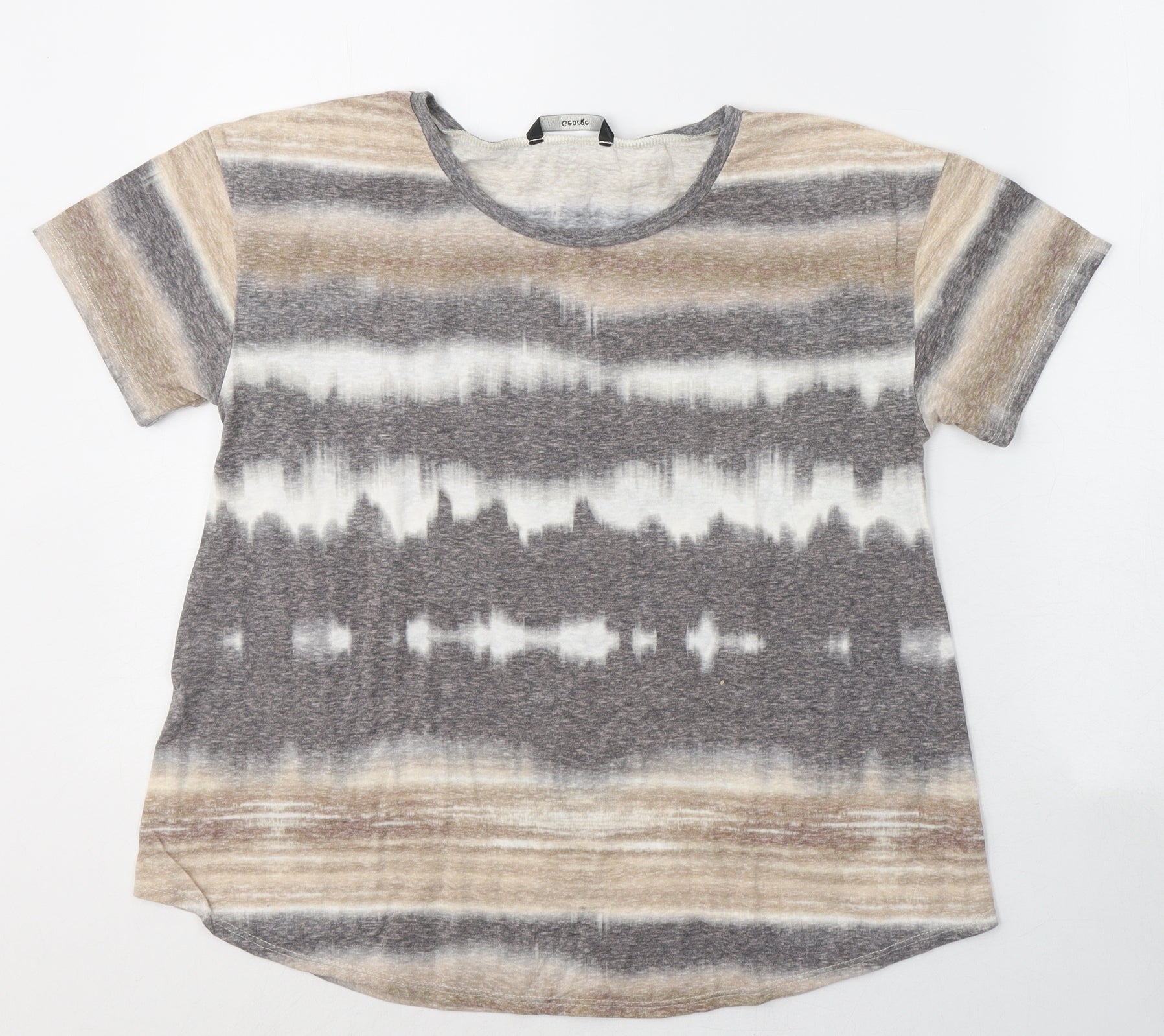 George Womens Brown Striped Cotton Basic T-Shirt Size 8 Round Neck