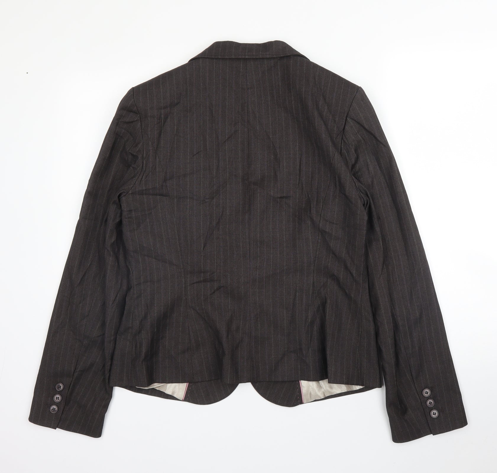 George Womens Brown Striped Vinyl Jacket Blazer Size 14