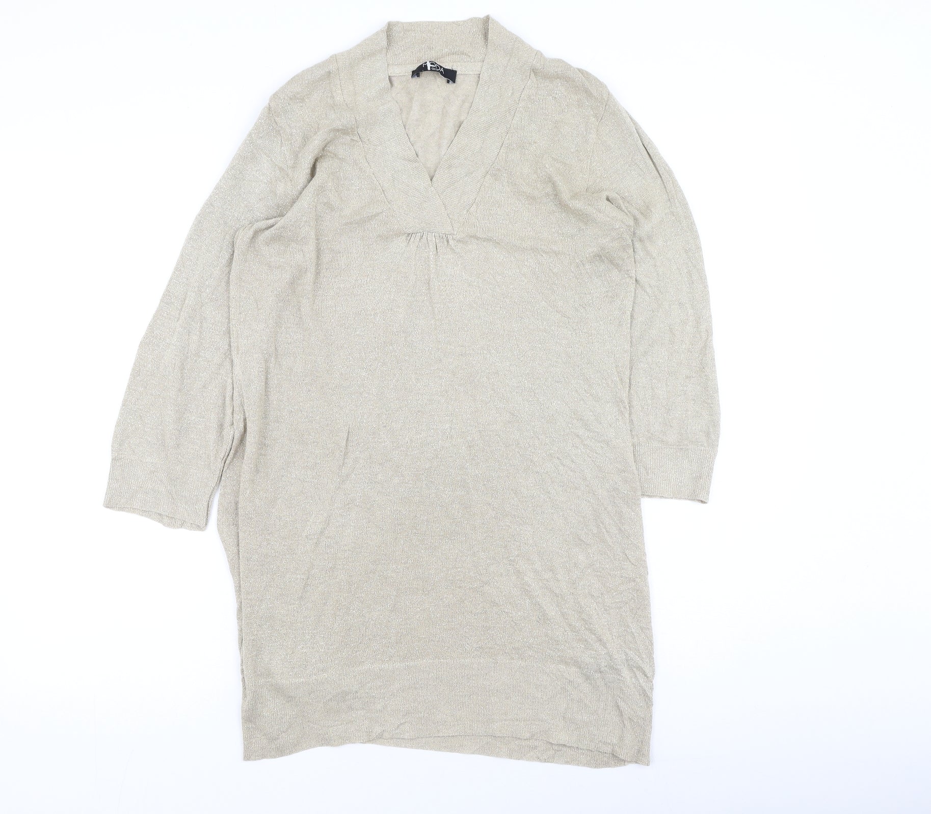 George Womens Gold V-Neck Viscose Pullover Jumper Size 12
