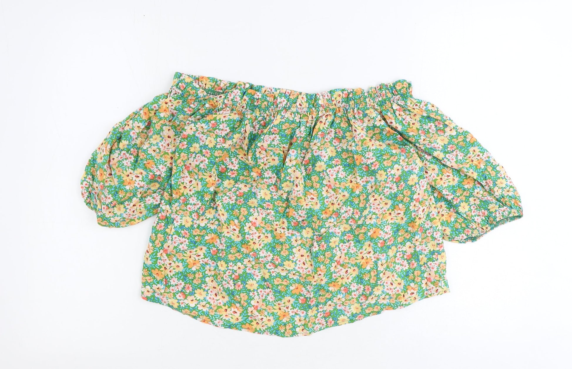 George Womens Green Geometric Viscose Cropped Tank Size 12 Off the Shoulder