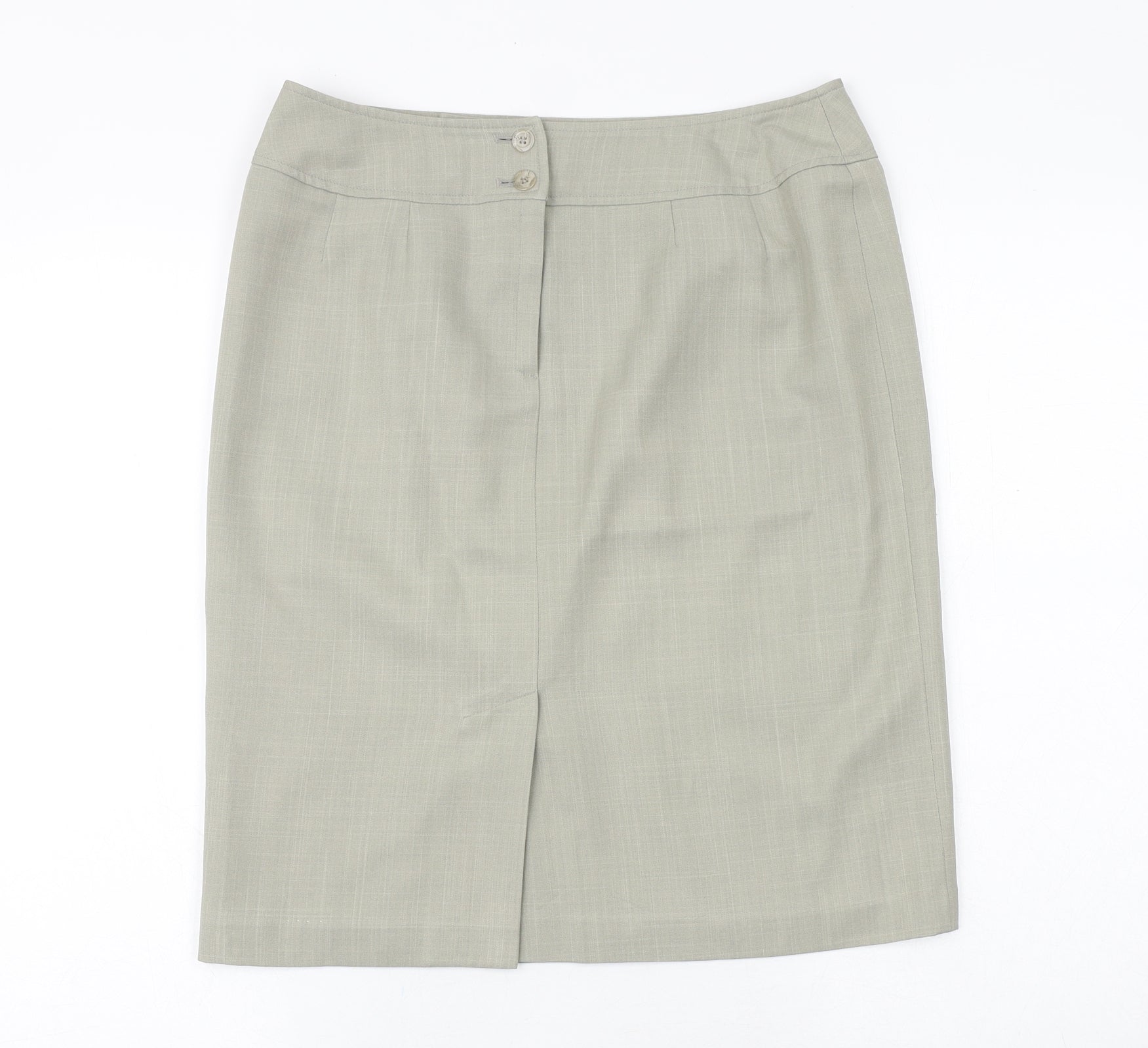 George Womens Green Polyester A-Line Skirt Size 12 Button
