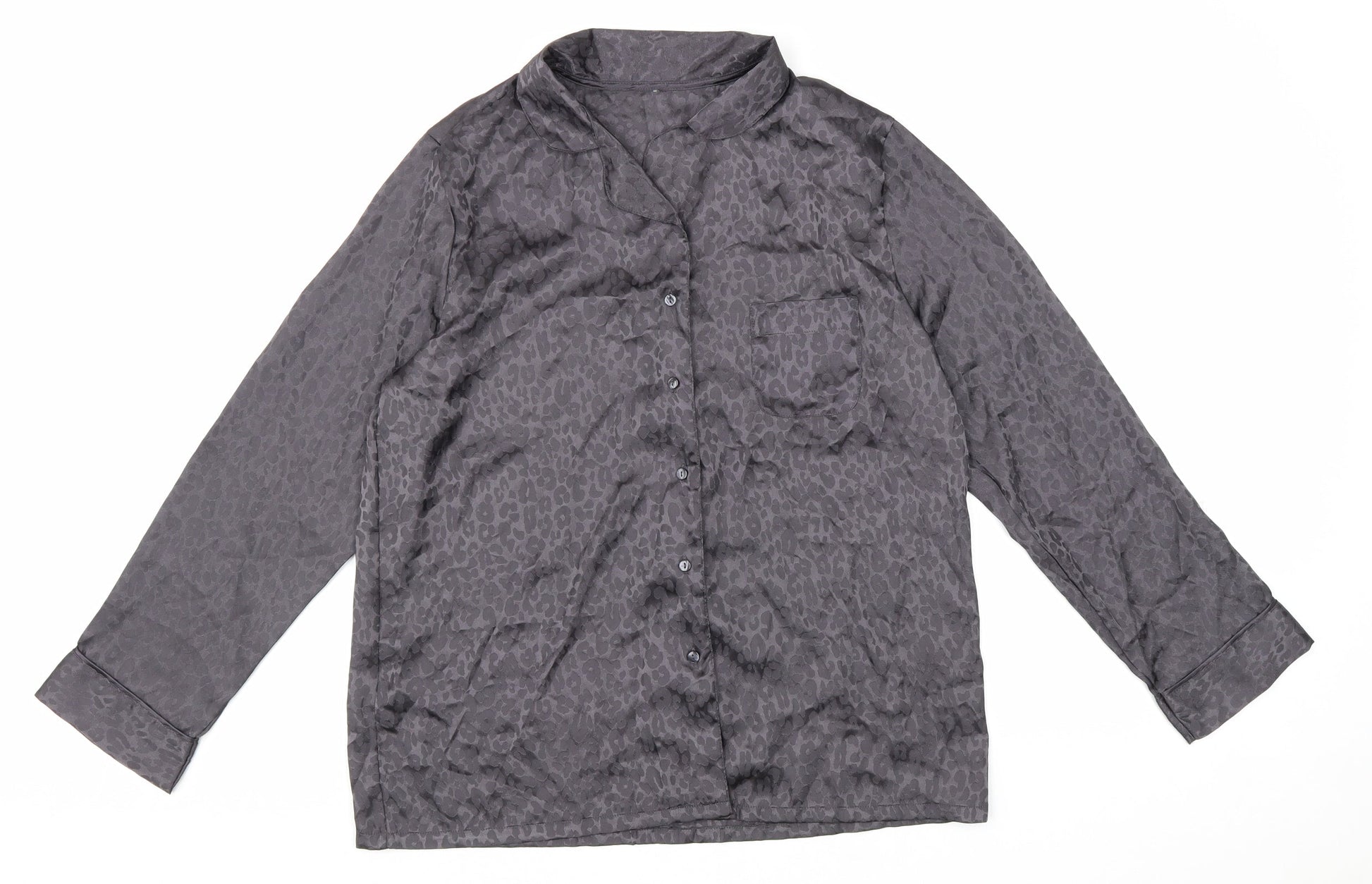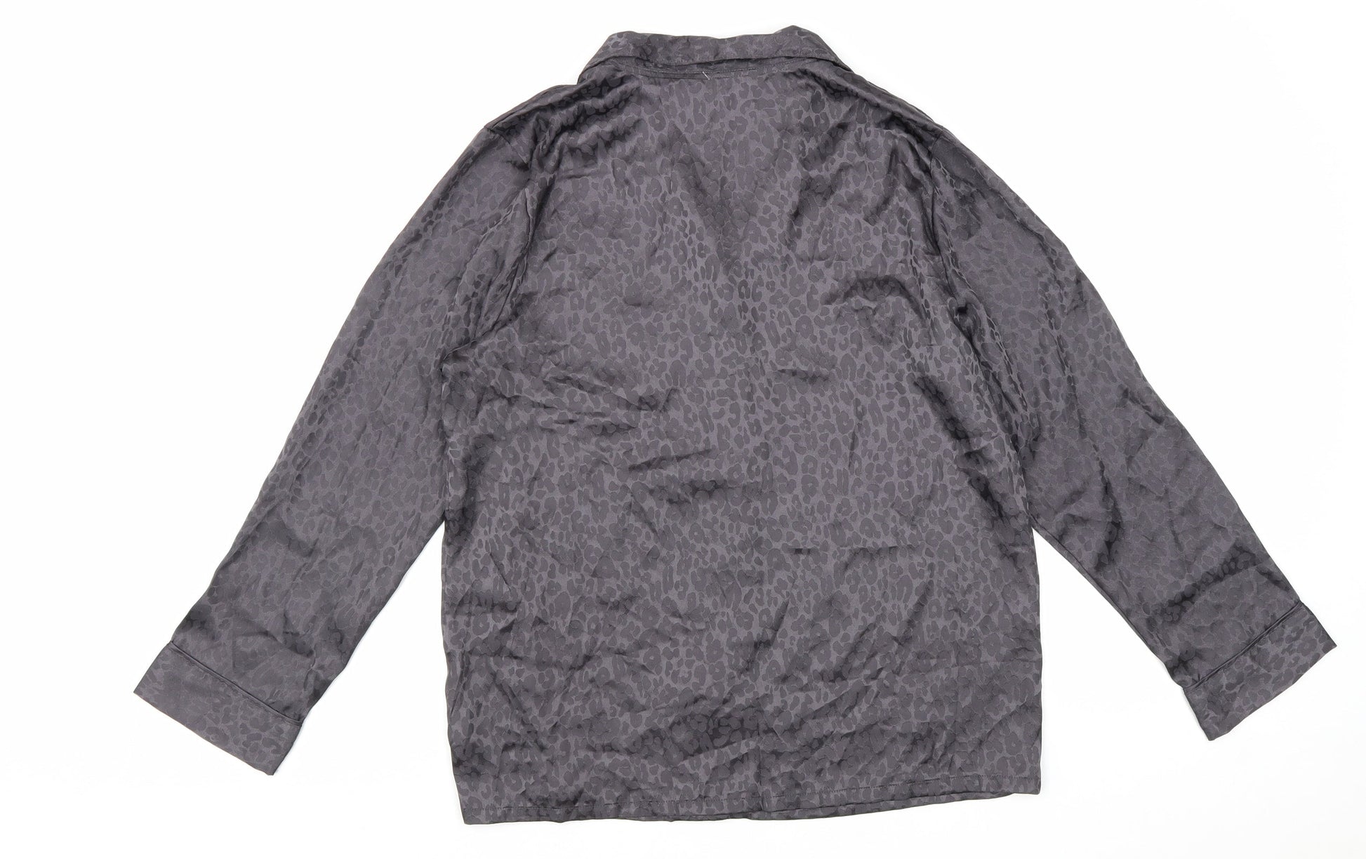 George Womens Grey Animal Print Polyester Basic Button-Up Size 12 V-Neck - Leopard Print