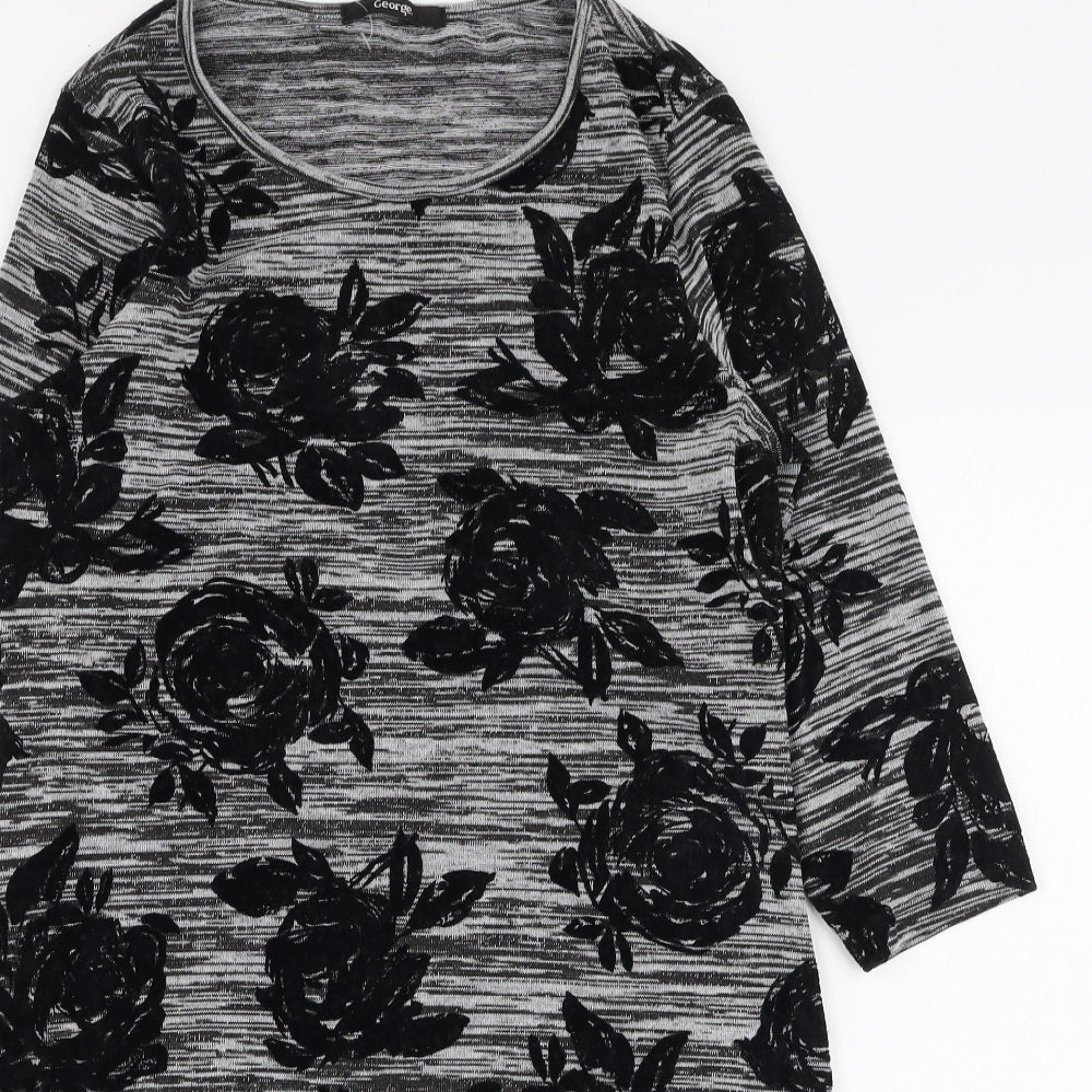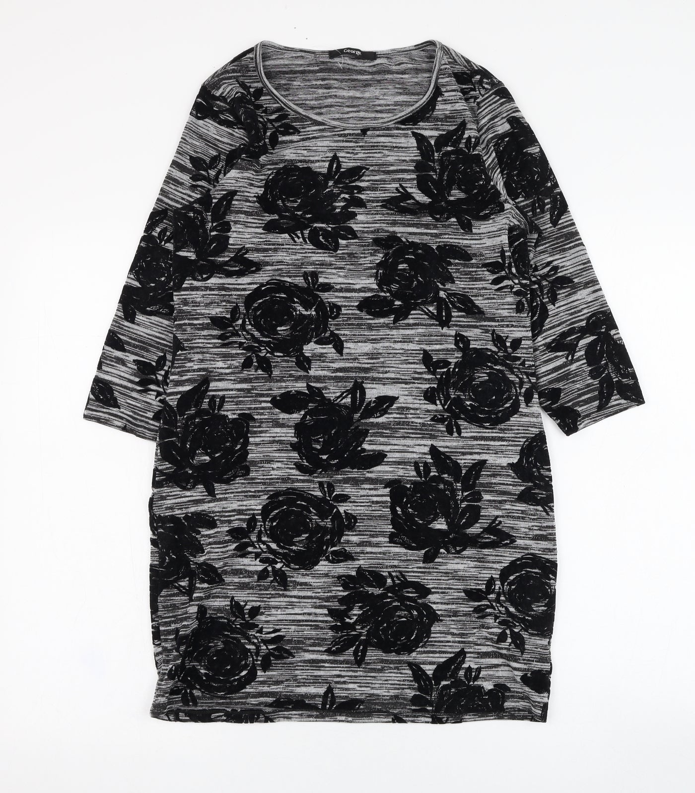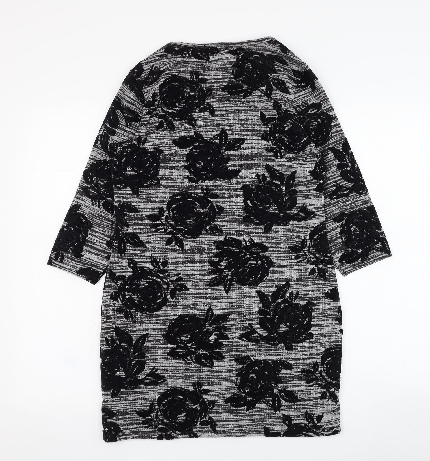 George Womens Grey Floral Polyester T-Shirt Dress Size 8 Round Neck Pullover