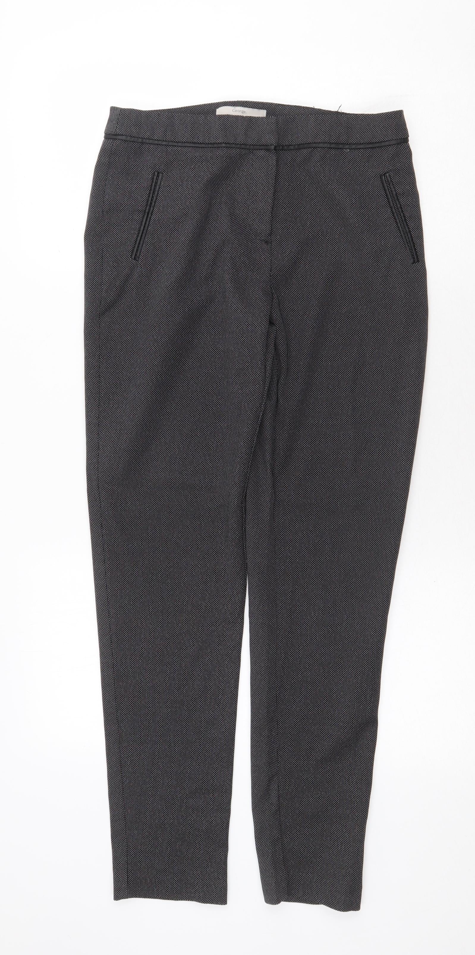 George Womens Grey Geometric Polyester Trousers Size 8 Regular Zip