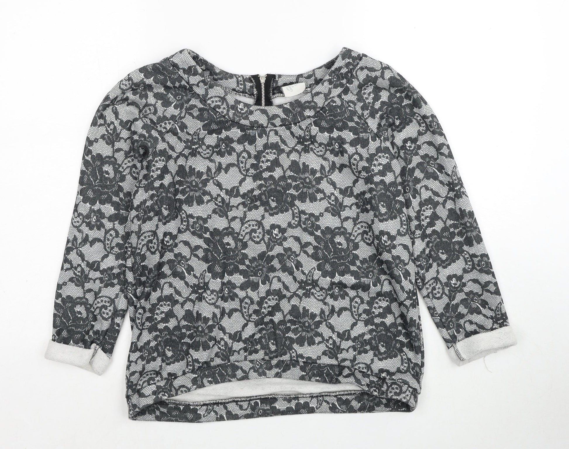 George Womens Grey Round Neck Floral Polyester Pullover Jumper Size 8