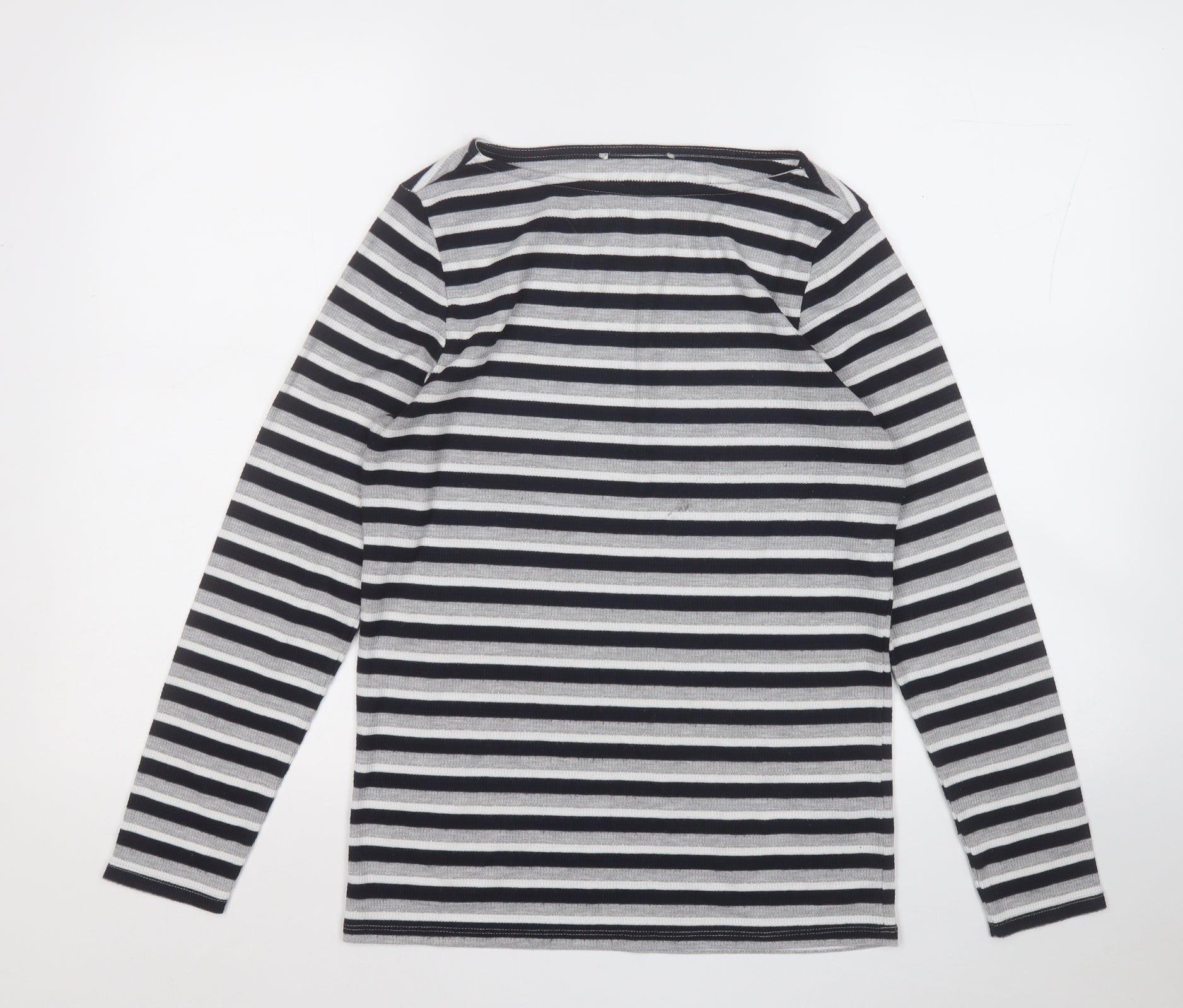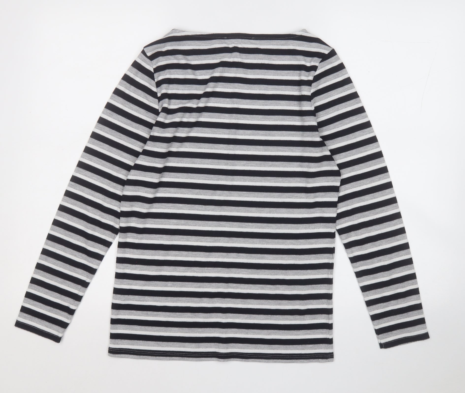 George Womens Grey Round Neck Striped Polyester Pullover Jumper Size 14