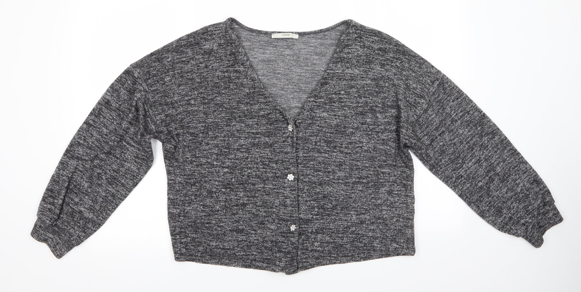 George Womens Grey Round Neck Viscose Cardigan Jumper Size 16 - Black Grey Fleck Gem Like Daisy buttons