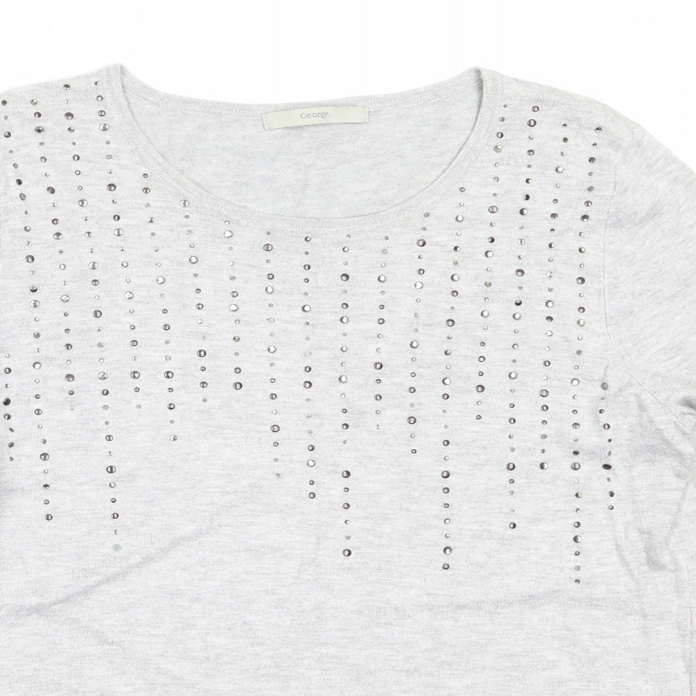 George Womens Grey Round Neck Viscose Pullover Jumper Size 12