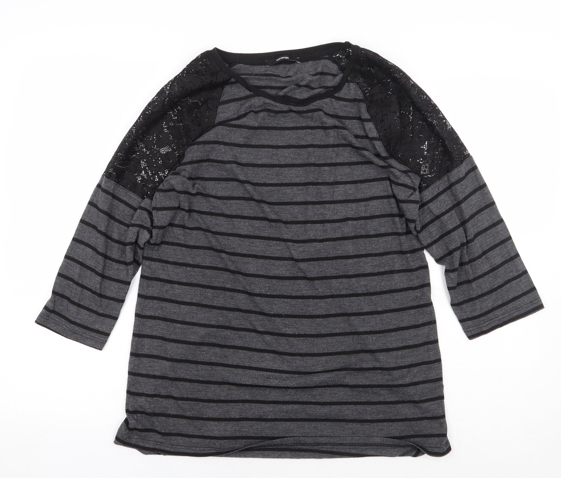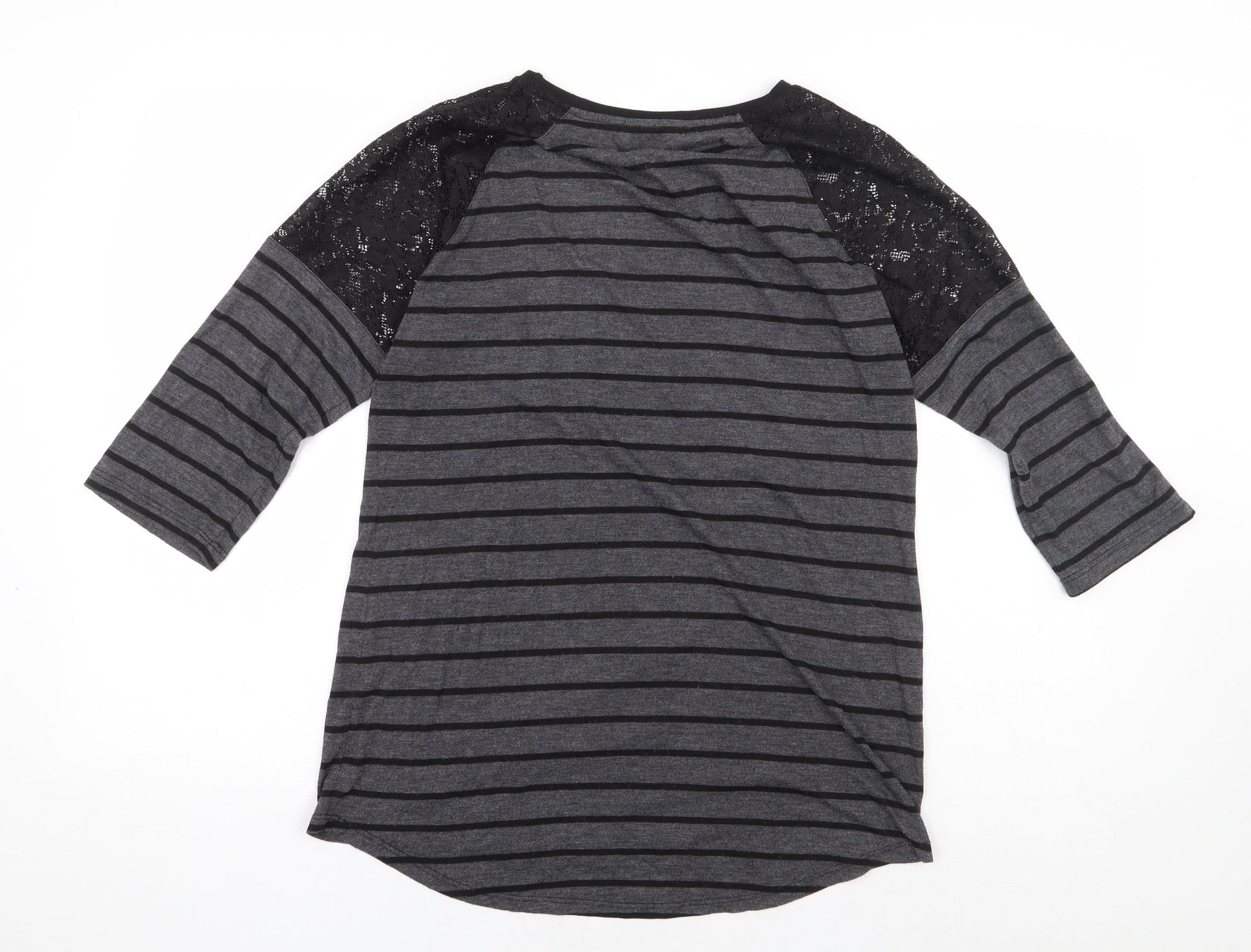 George Womens Grey Striped Polyester Basic Blouse Size 12 Round Neck - Lace Detail