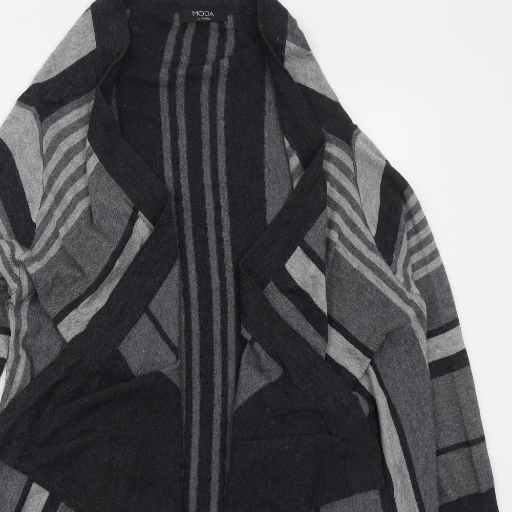 George Womens Grey V-Neck Striped Viscose Cardigan Jumper Size 14