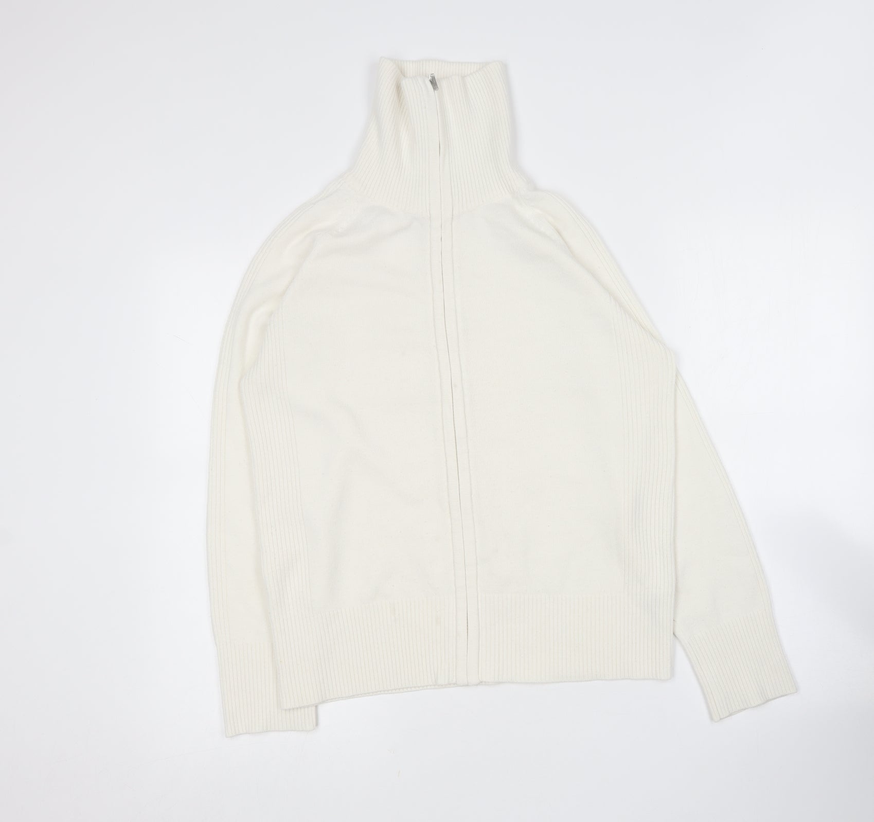 George Womens Ivory Collared Acrylic Full Zip Jumper Size 16