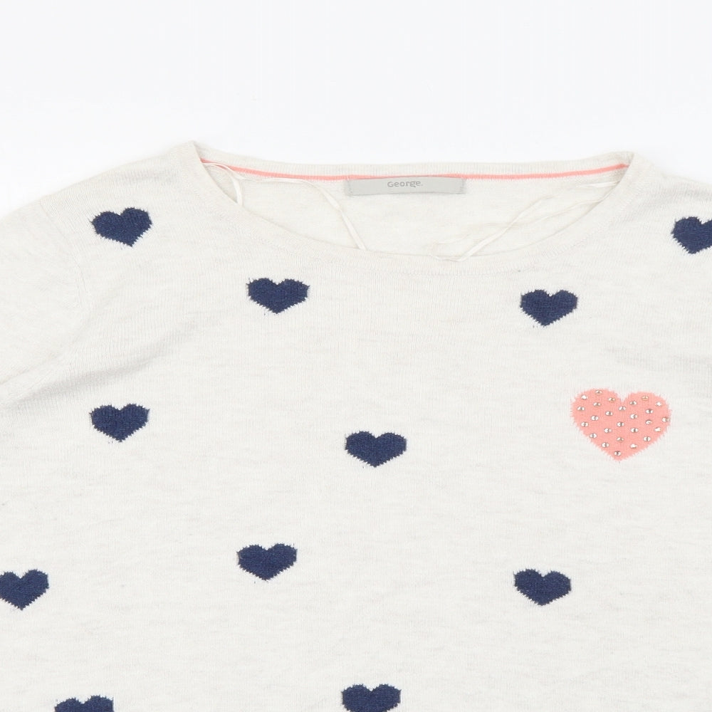 George Womens Ivory Crew Neck Geometric Viscose Pullover Jumper Size 14