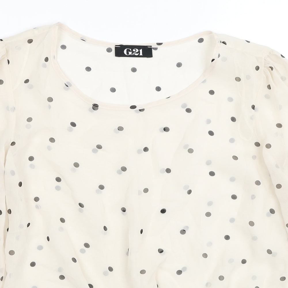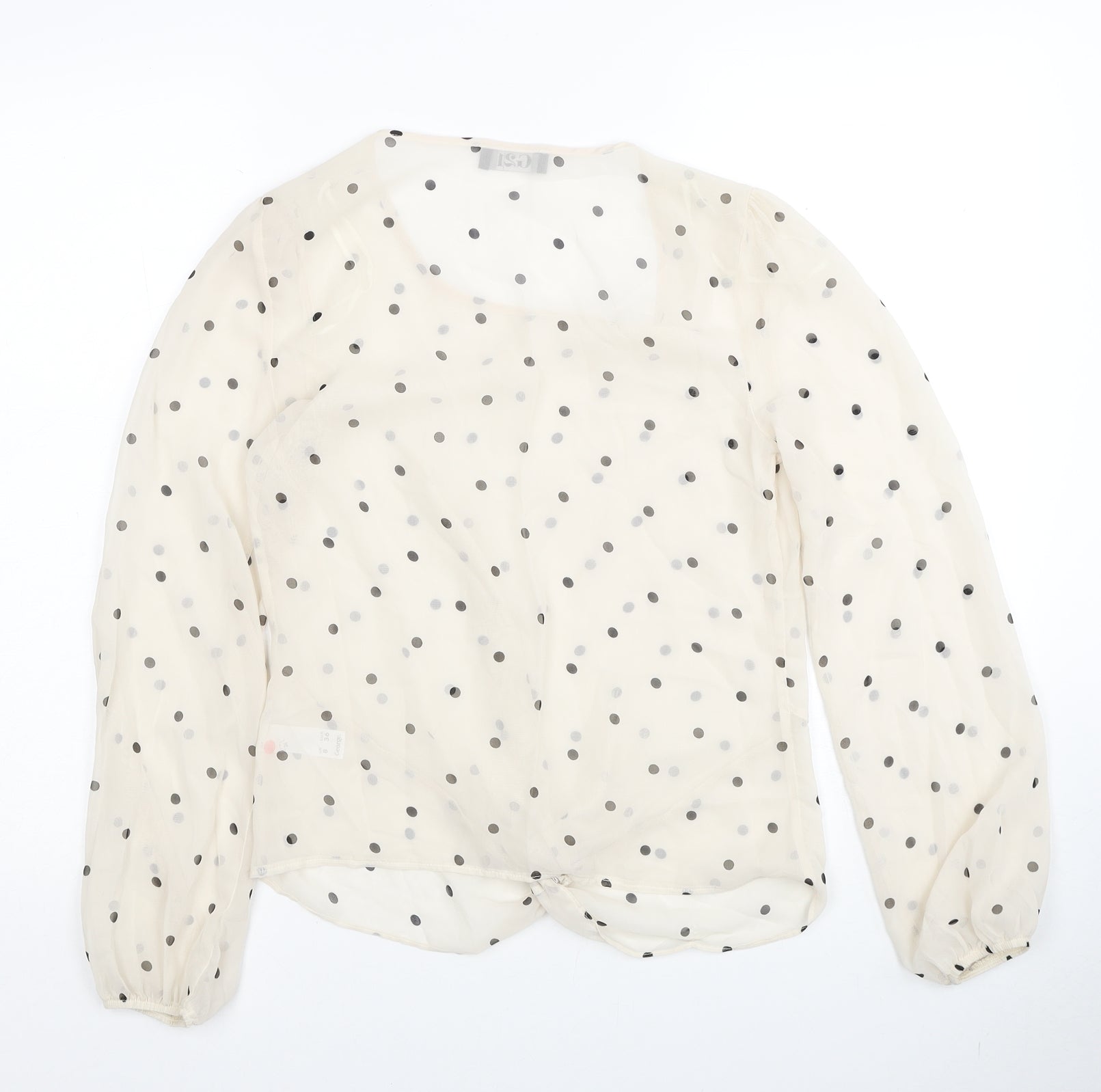 George Womens Ivory Polka Dot Polyester Basic Blouse Size 8 Round Neck - Knot Front