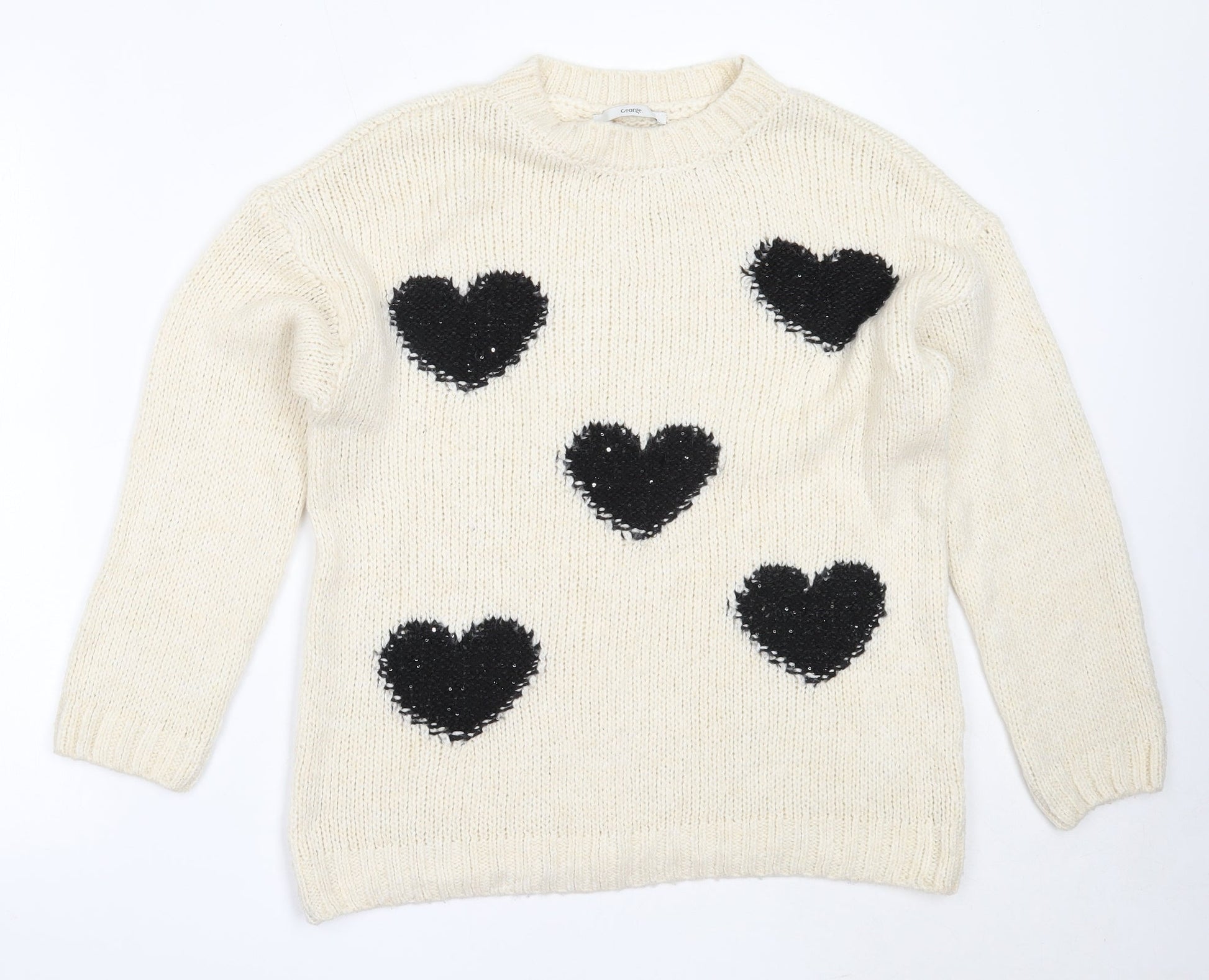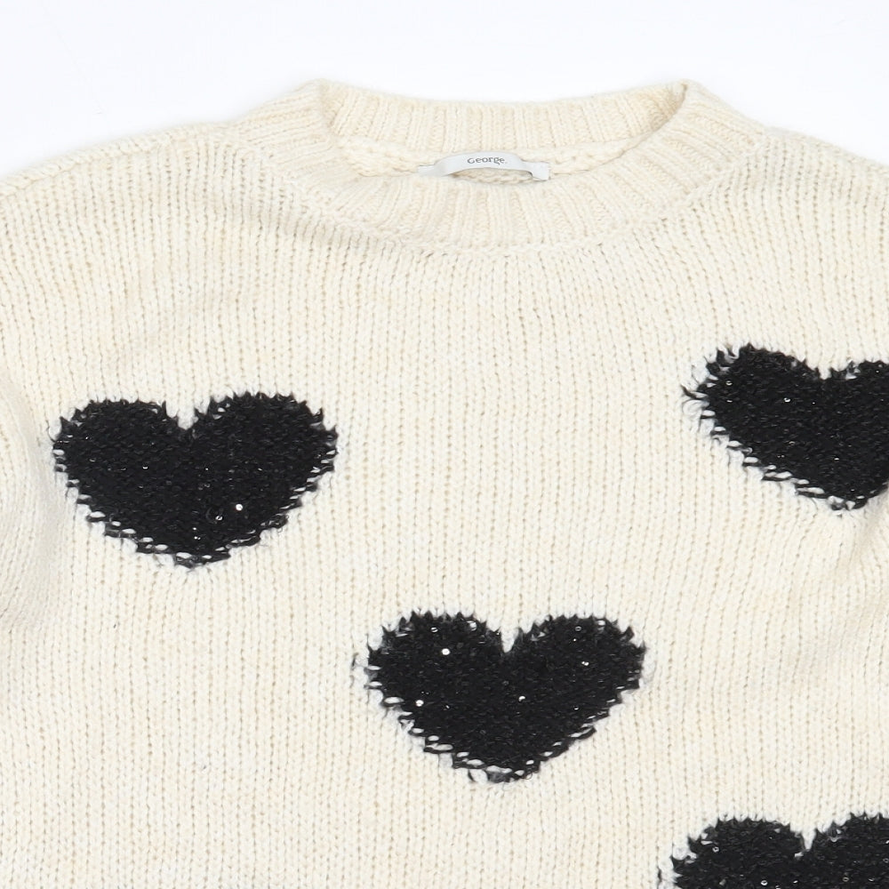 George Womens Ivory Round Neck Acrylic Pullover Jumper Size M