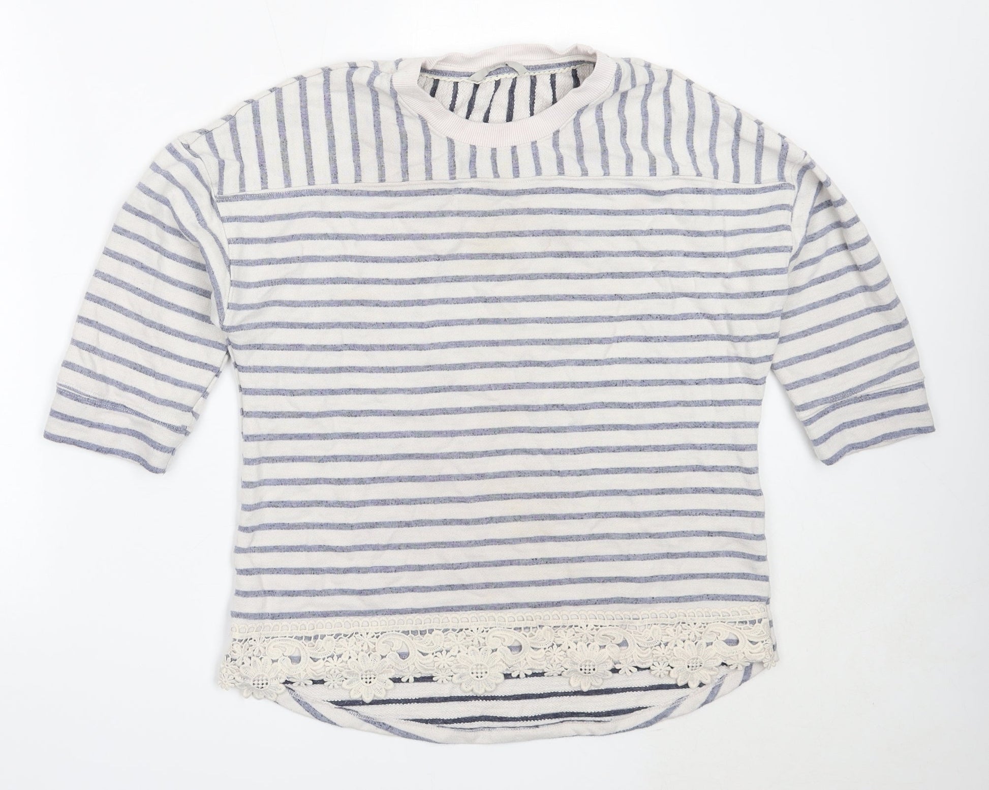George Womens Ivory Round Neck Striped Polyester Pullover Jumper Size 14