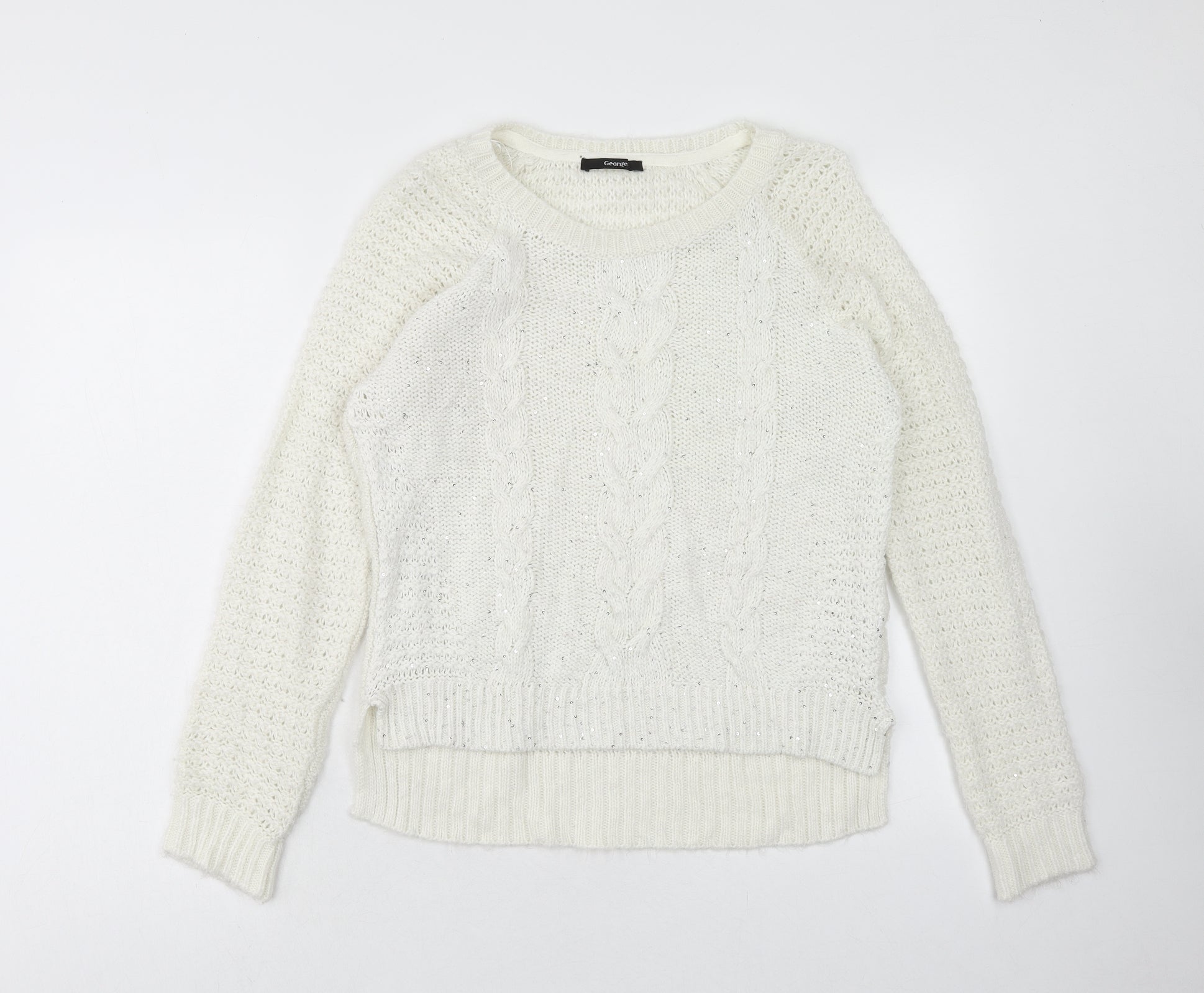 George Womens Ivory Scoop Neck Acrylic Pullover Jumper Size 12