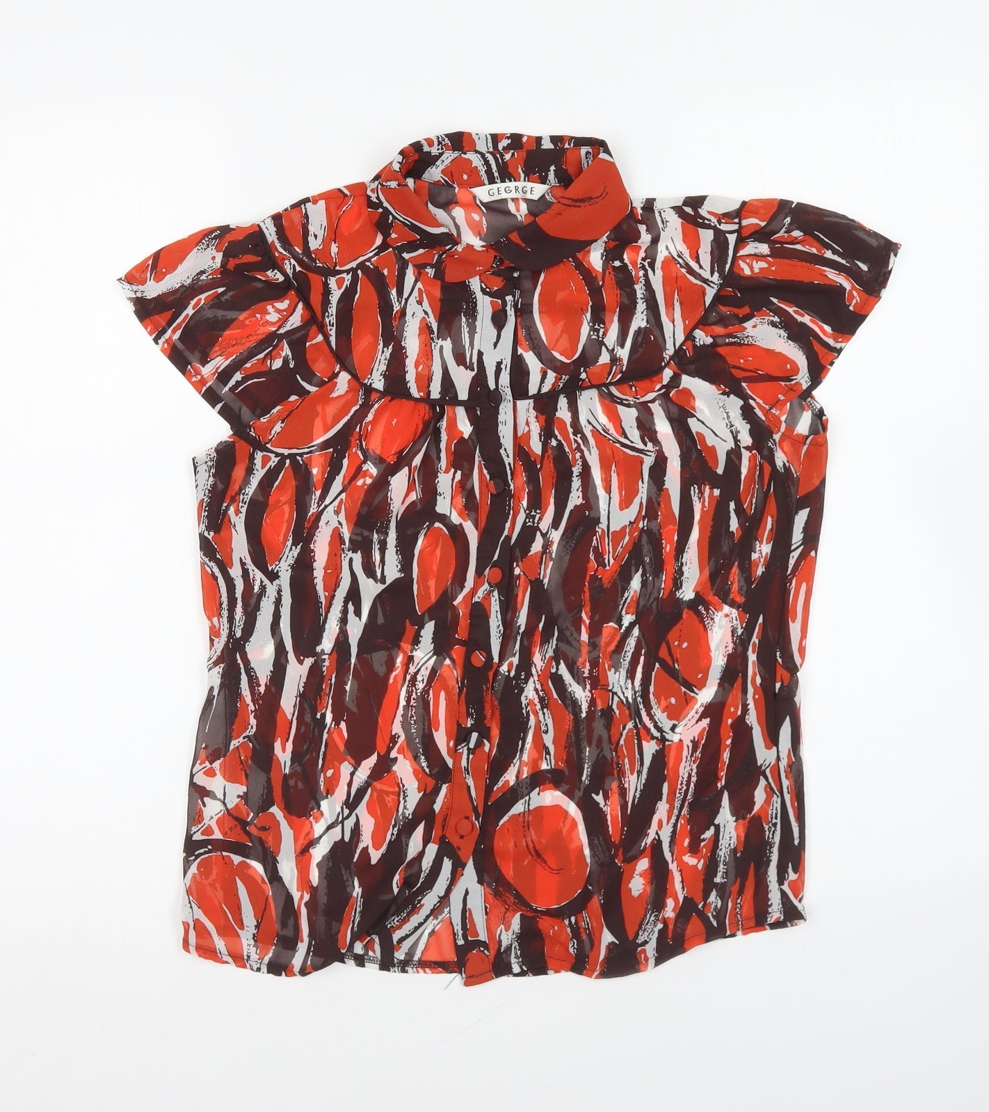 George Womens Multicoloured Geometric Polyester Basic Button-Up Size 10 Collared