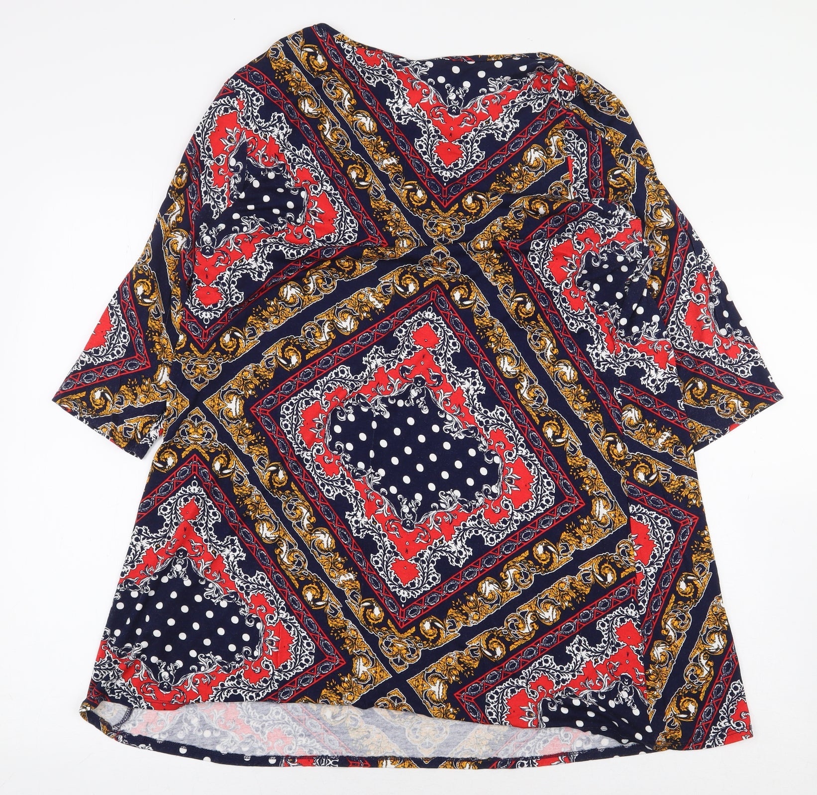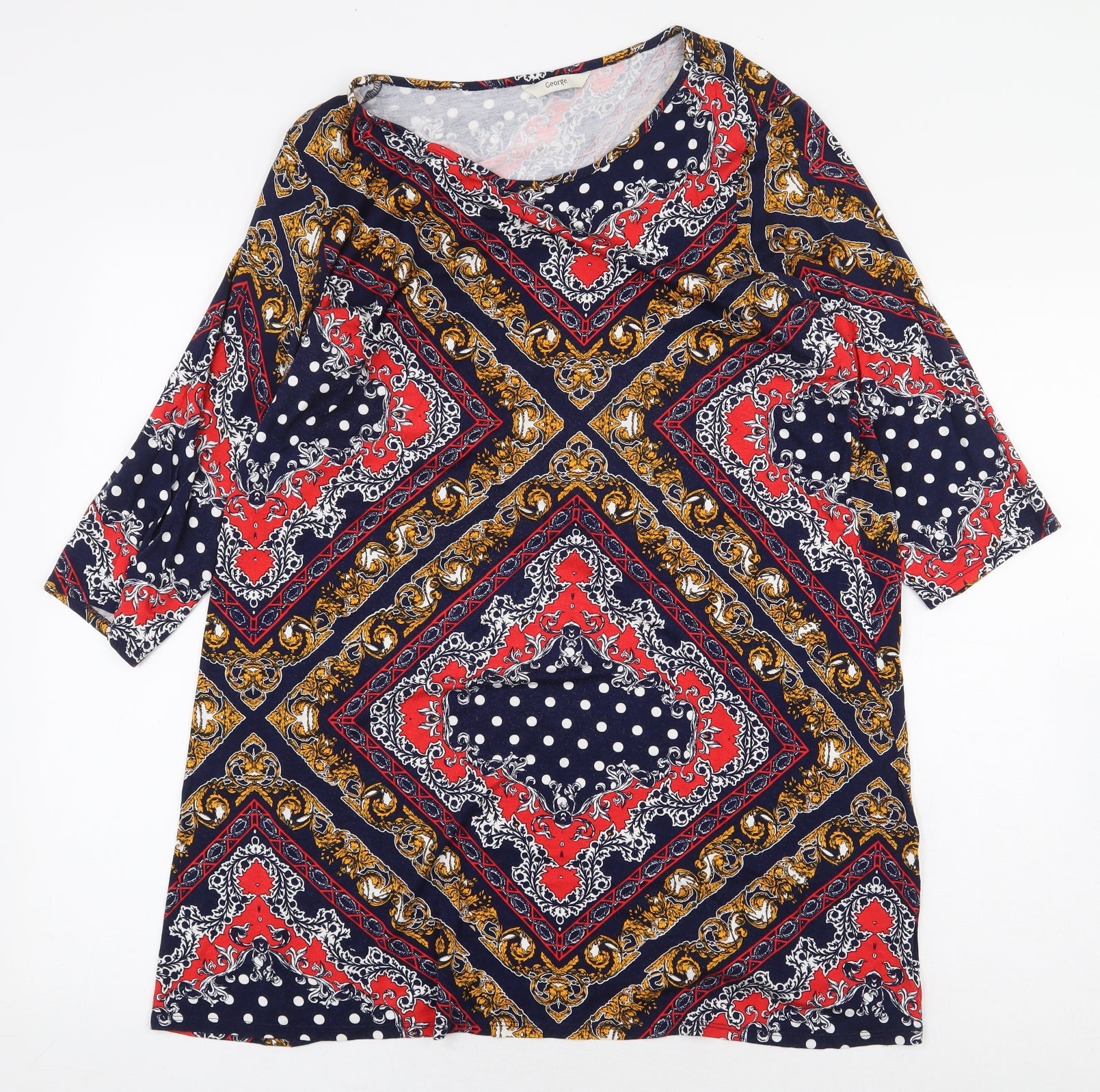 George Womens Multicoloured Geometric Viscose Basic Blouse Size 16 Boat Neck