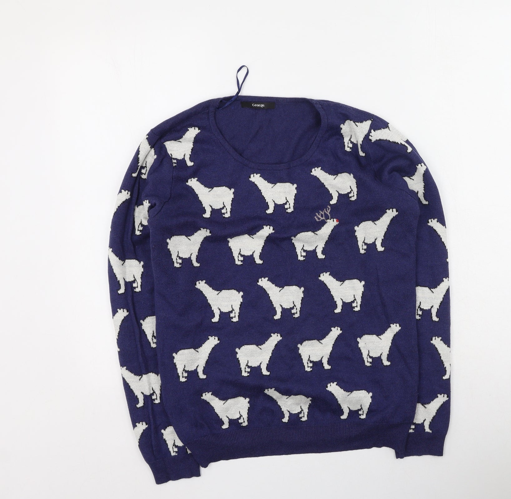 George Womens Multicoloured Round Neck Polyester Pullover Jumper Size 14