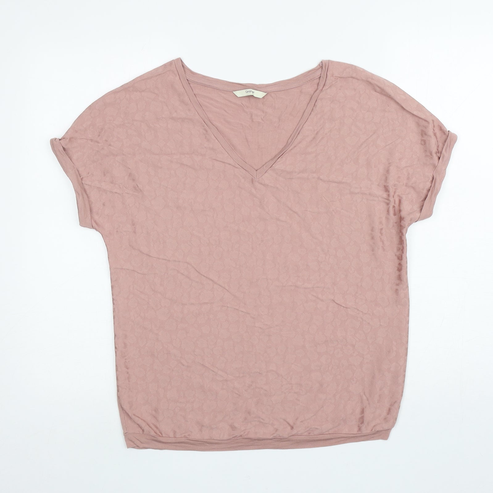 George Womens Pink Animal Print Viscose Basic T-Shirt Size 8 V-Neck